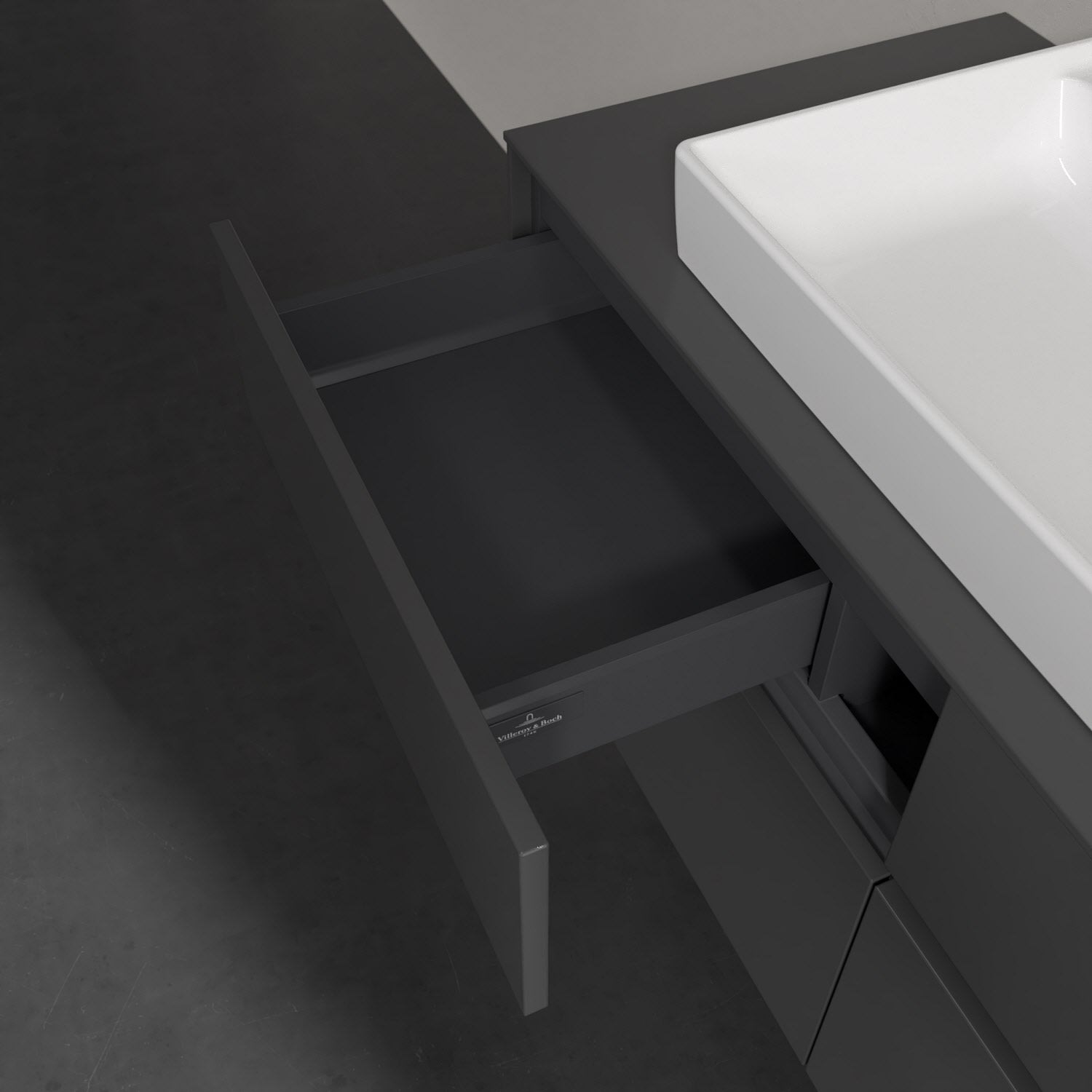 Stauraumwunder im zeitgemäßen Design: Der Villeroy & Boch Waschbeckenunterschrank aus der Collaro Kollektion eignet sich besonders für Familienbäder und bietet genau den Platz, der dort benötigt wird. Eine integrierte Griffleiste sorgt für eine schlichte, moderne Front. Im Inneren bietet das Möbelstück mit vier Auszügen erstaunlich viel Komfort – ermöglicht durch großzügiges Platzangebot und integrierte Antirutschmatten. Variabel setzbare Glasabtrennungen und mitgelieferte Accessory Boxen sorgen für den nötigen Überblick. Dank SoftClosing und Selbsteinzug lassen sich die Auszüge nach der Nutzung lautlos schließen.