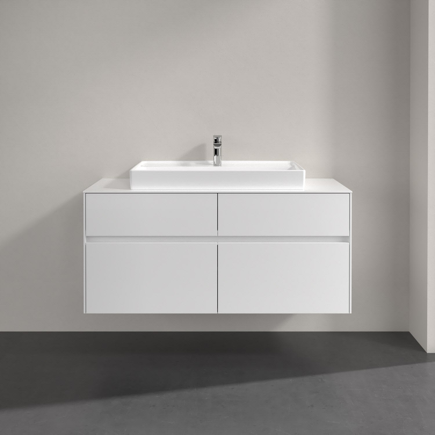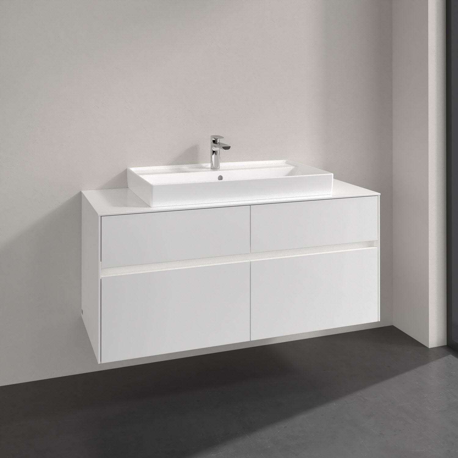Villeroy & Boch Collaro Waschtischunterschrank 120 x 54,8 cm mit 4 Auszügen und LED Licht, für WT mittig