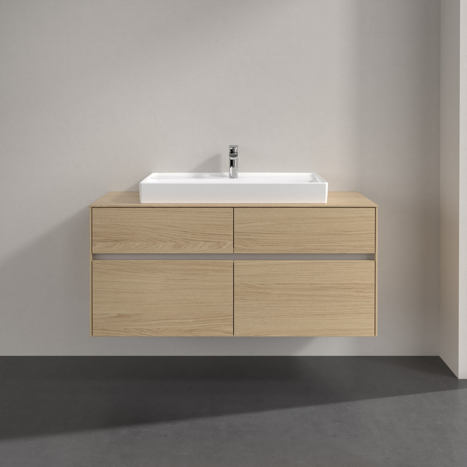 Villeroy & Boch Collaro Waschtischunterschrank 120 x 54,8 cm mit 4 Auszügen und LED Licht, für WT mittig