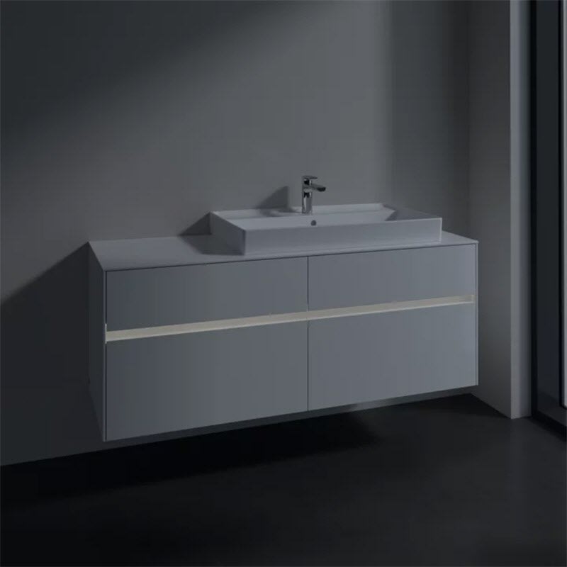 Villeroy & Boch Collaro Waschtischunterschrank 140 x 54,8 cm mit 4 Auszügen und LED Licht, für WT rechts
