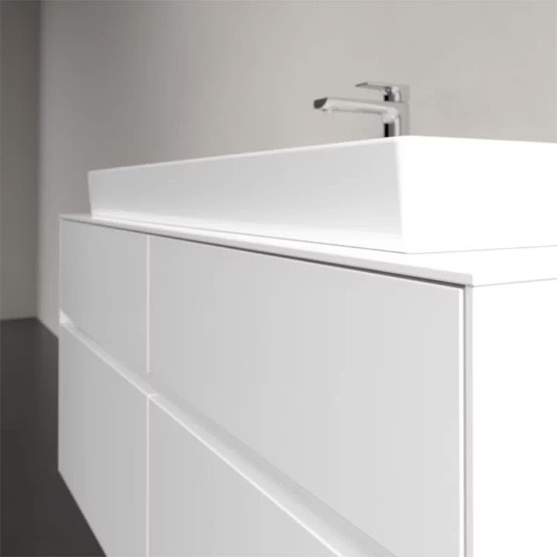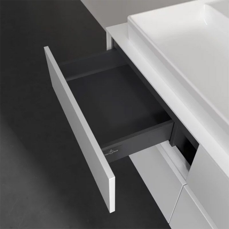 Stauraumwunder im zeitgemäßen Design: Der Villeroy & Boch Waschbeckenunterschrank aus der Collaro Kollektion eignet sich besonders für Familienbäder und bietet genau den Platz, der dort benötigt wird. Eine integrierte Griffleiste sorgt für eine schlichte, moderne Front. Im Inneren bietet das Möbelstück mit vier Auszügen erstaunlich viel Komfort – ermöglicht durch großzügiges Platzangebot und integrierte Antirutschmatten. Variabel setzbare Glasabtrennungen und mitgelieferte Accessory Boxen sorgen für den nötigen Überblick. Dank SoftClosing und Selbsteinzug lassen sich die Auszüge nach der Nutzung lautlos schließen.