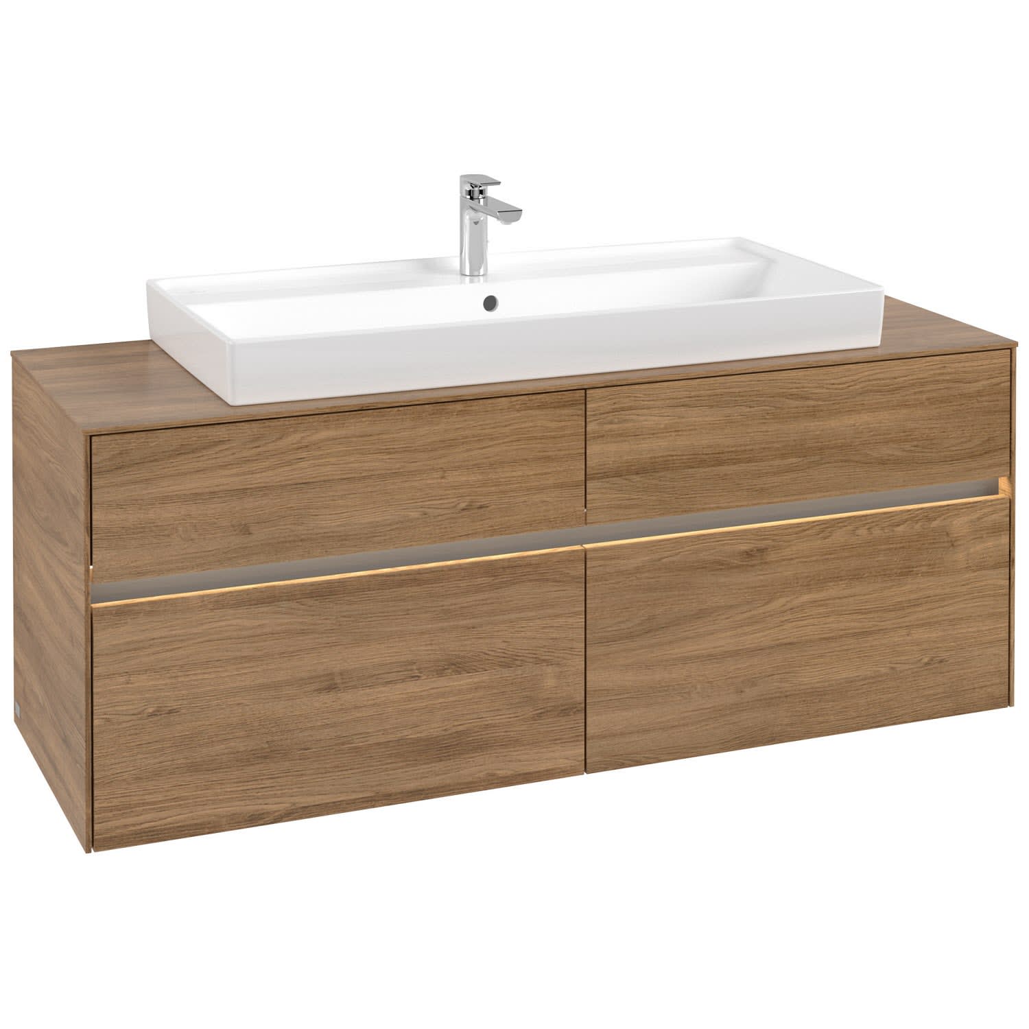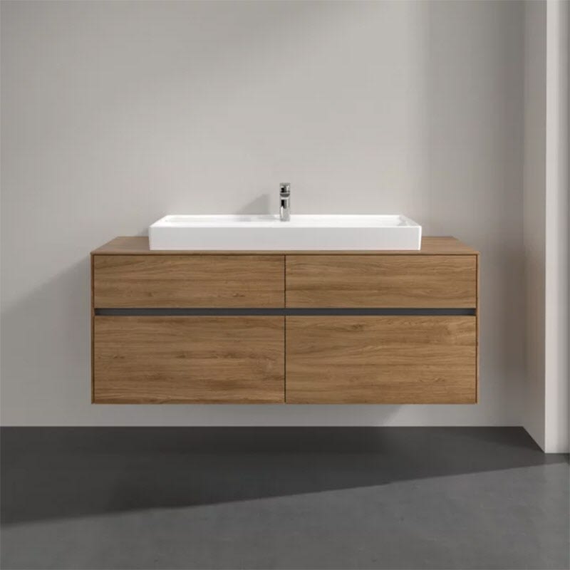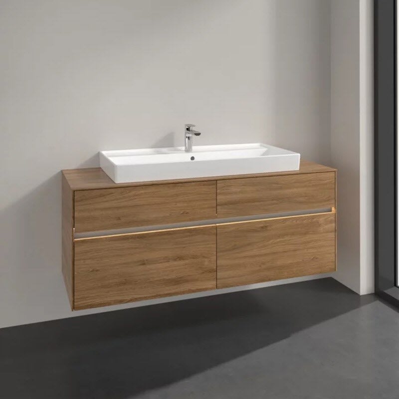 Villeroy & Boch Collaro Waschtischunterschrank 140 x 54,8 cm mit 4 Auszügen und LED Licht, für WT mittig