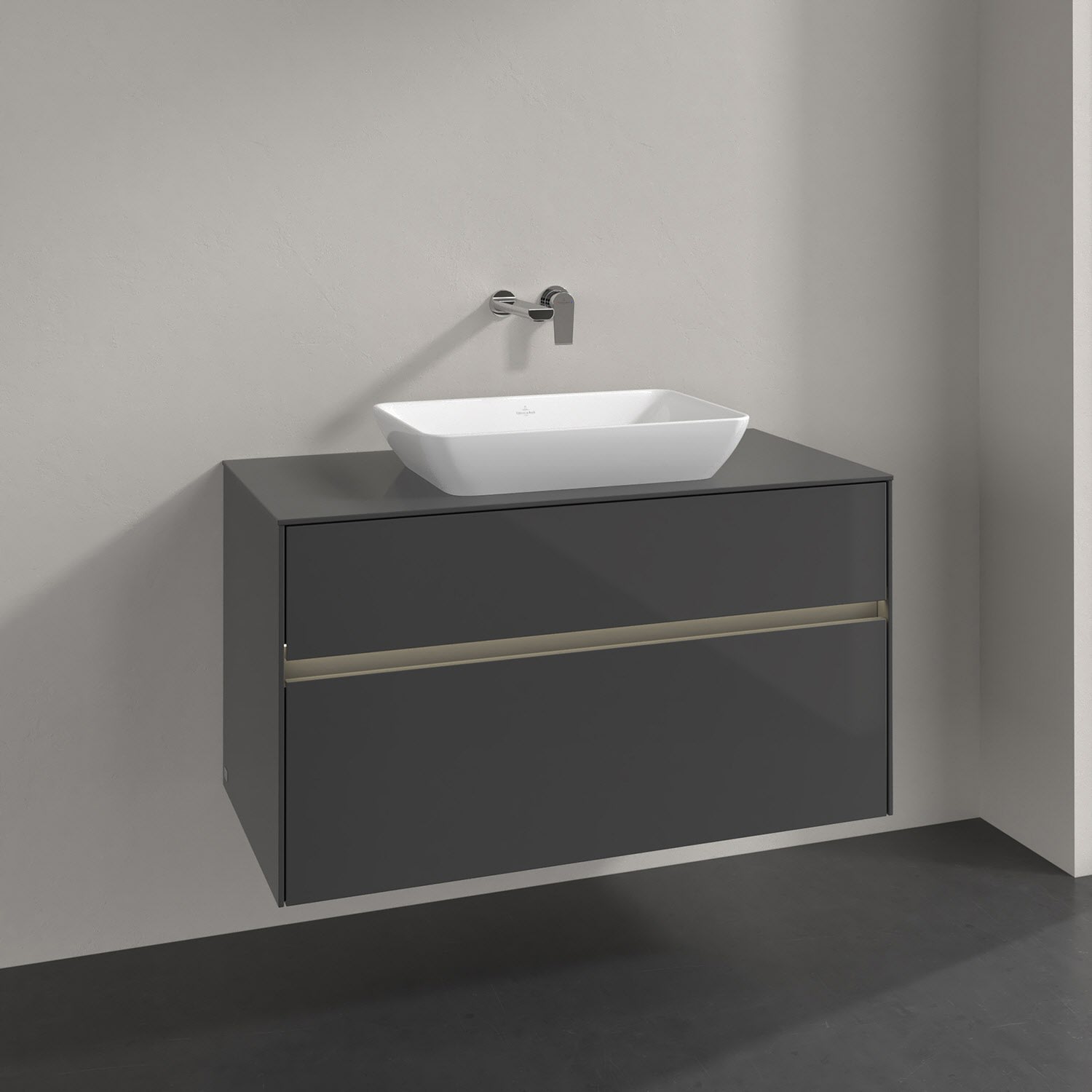Villeroy & Boch Collaro Waschtischunterschrank 100 x 50 cm, mit 2 Auszügen und LED-Beleuchtung für Venticello Waschtisch