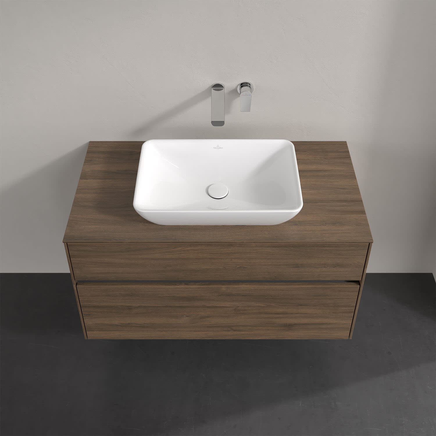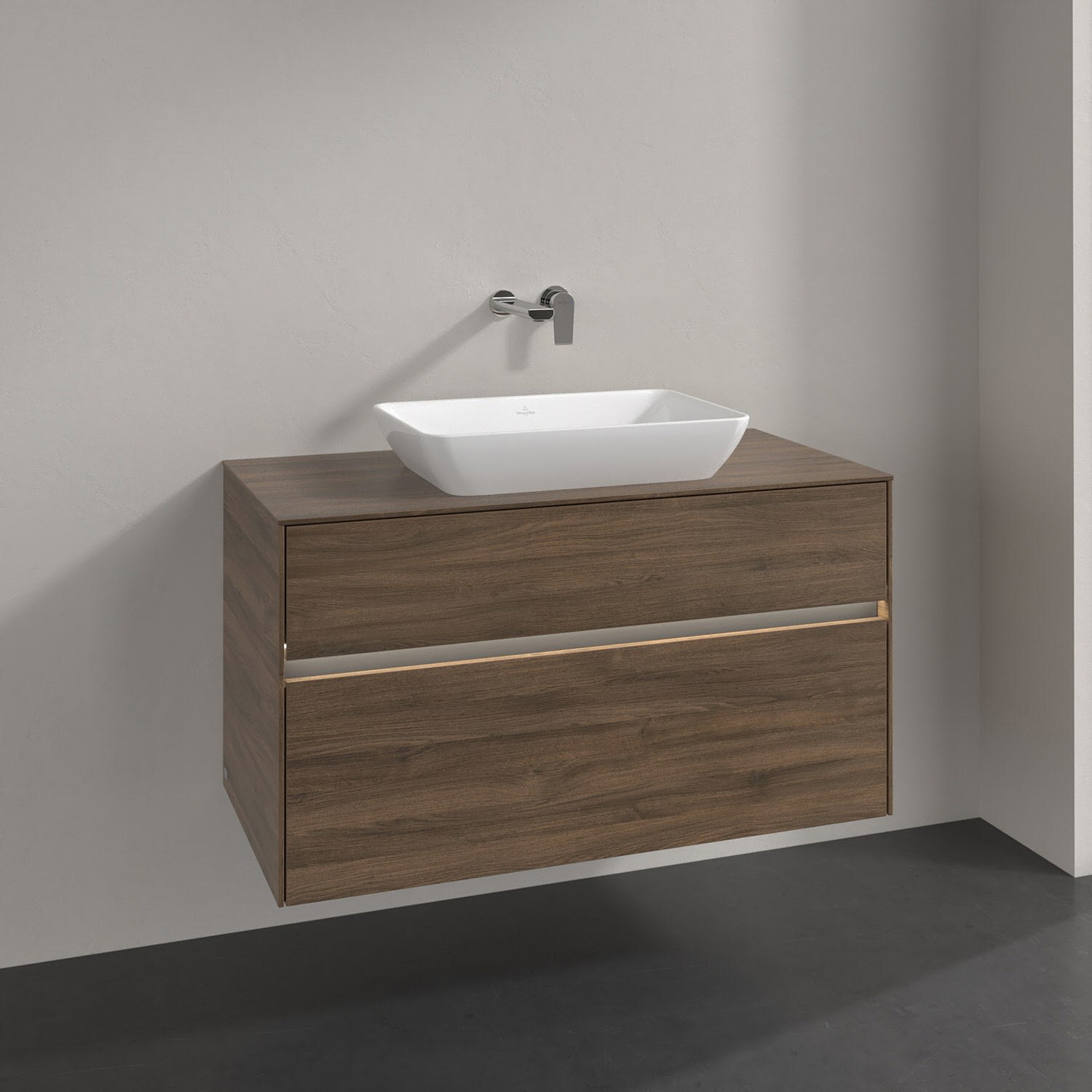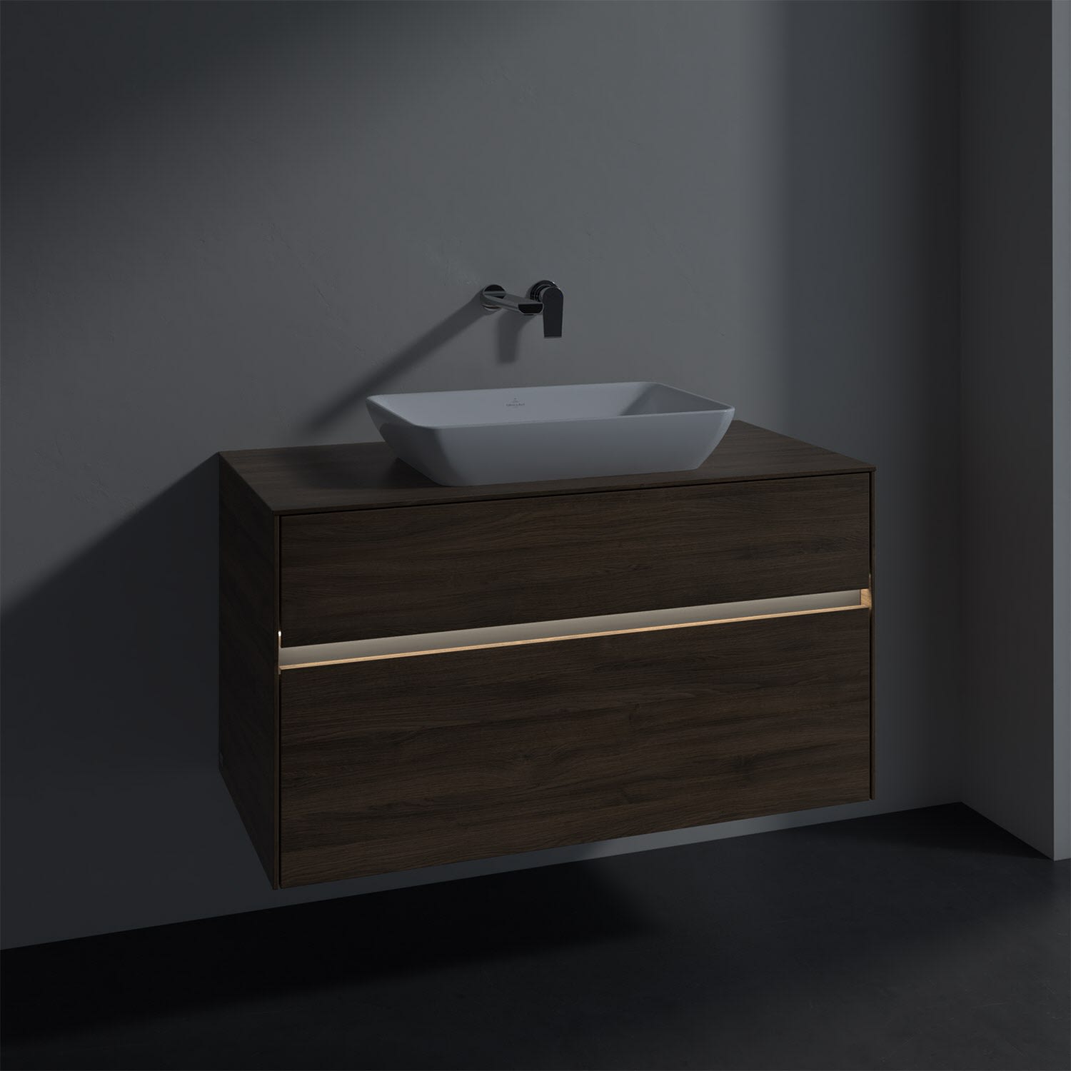 Villeroy & Boch Collaro Waschtischunterschrank 100 x 50 cm, mit 2 Auszügen und LED-Beleuchtung für Venticello Waschtisch