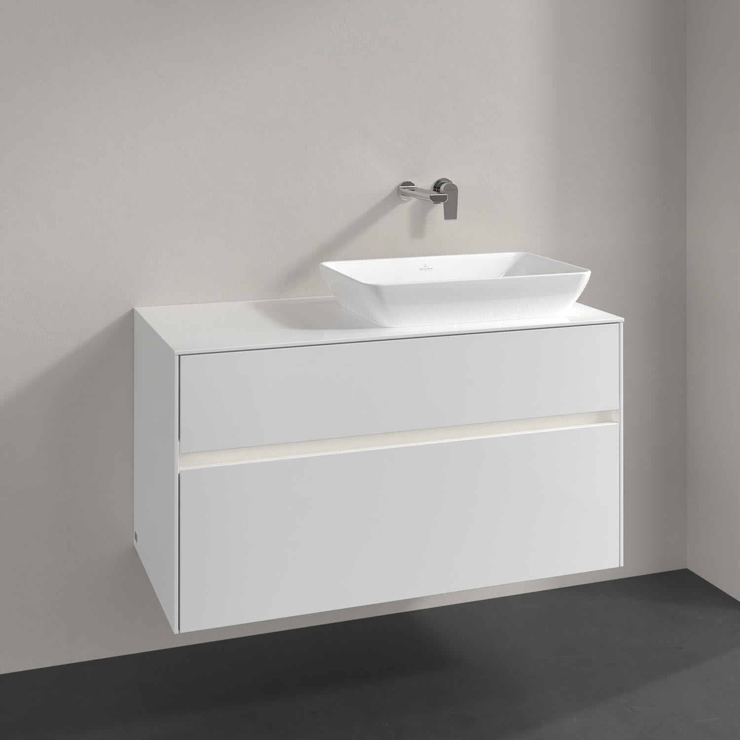 Villeroy & Boch Collaro Waschtischunterschrank 100 x 50 cm, mit 2 Auszügen und LED-Beleuchtung für Venticello Waschtisch