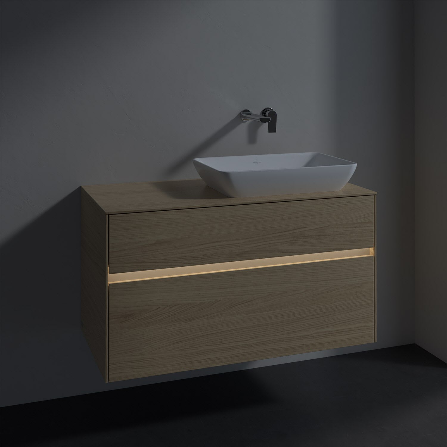 Villeroy & Boch Collaro Waschtischunterschrank 100 x 50 cm, mit 2 Auszügen und LED-Beleuchtung für Venticello Waschtisch