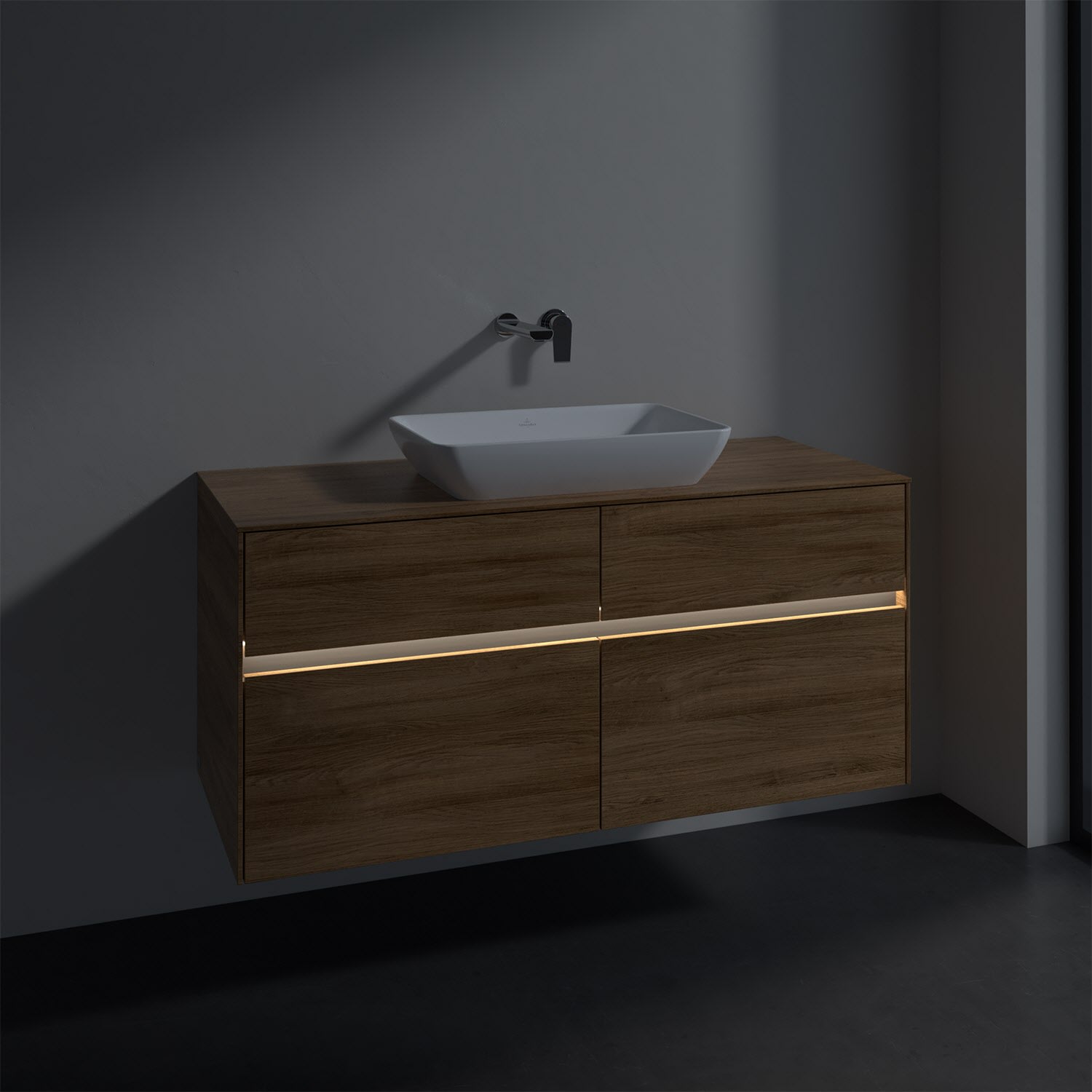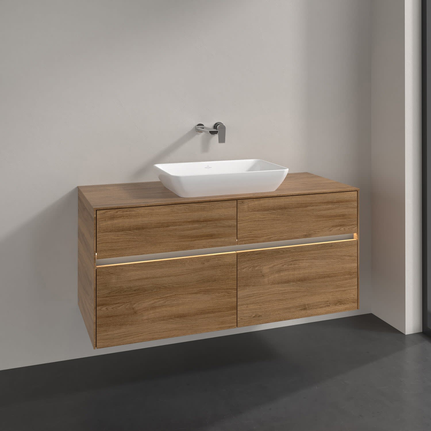 Villeroy & Boch Collaro Waschtischunterschrank 120 x 50 cm, mit 4 Auszügen und LED-Beleuchtung für Venticello Waschtisch