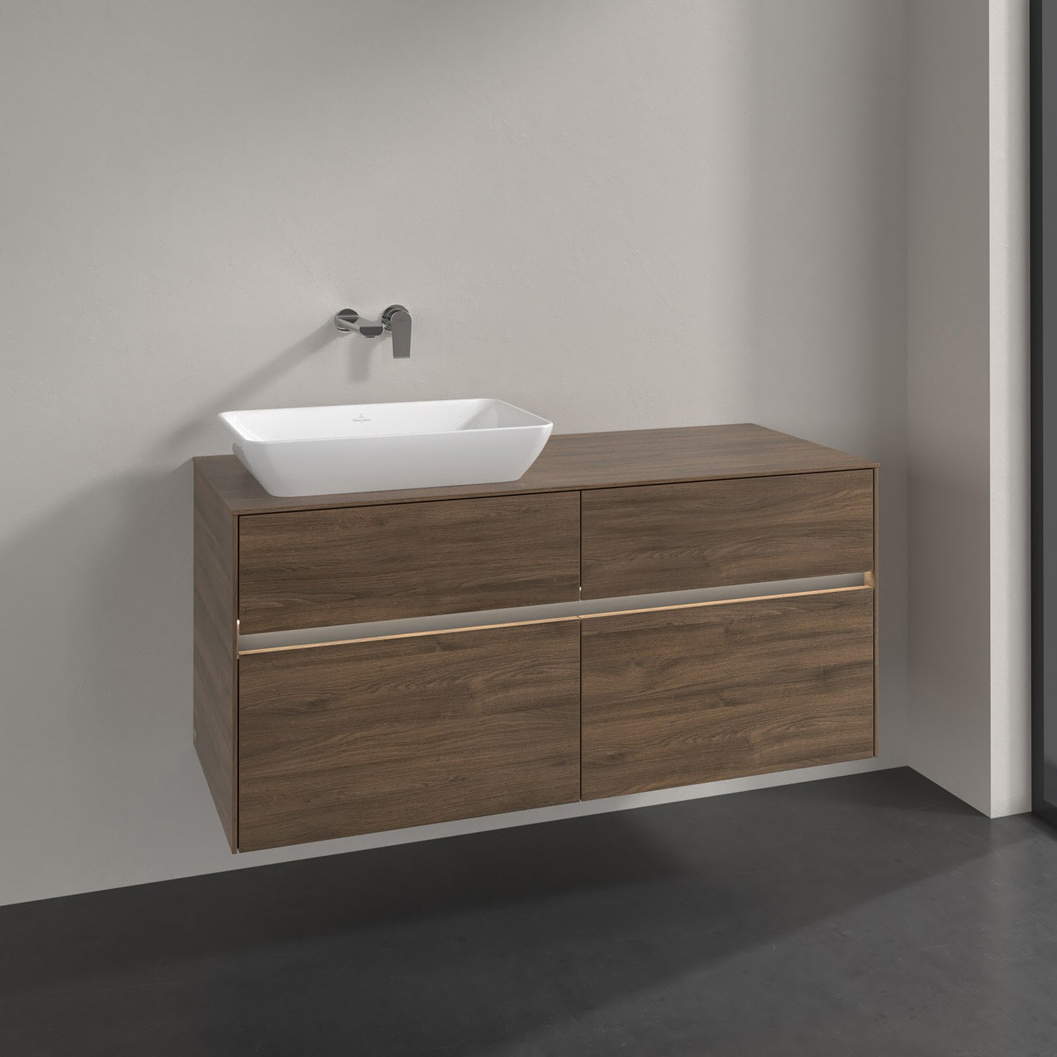 Villeroy & Boch Collaro Waschtischunterschrank 120 x 50 cm, mit 4 Auszügen und LED-Beleuchtung für Venticello Waschtisch