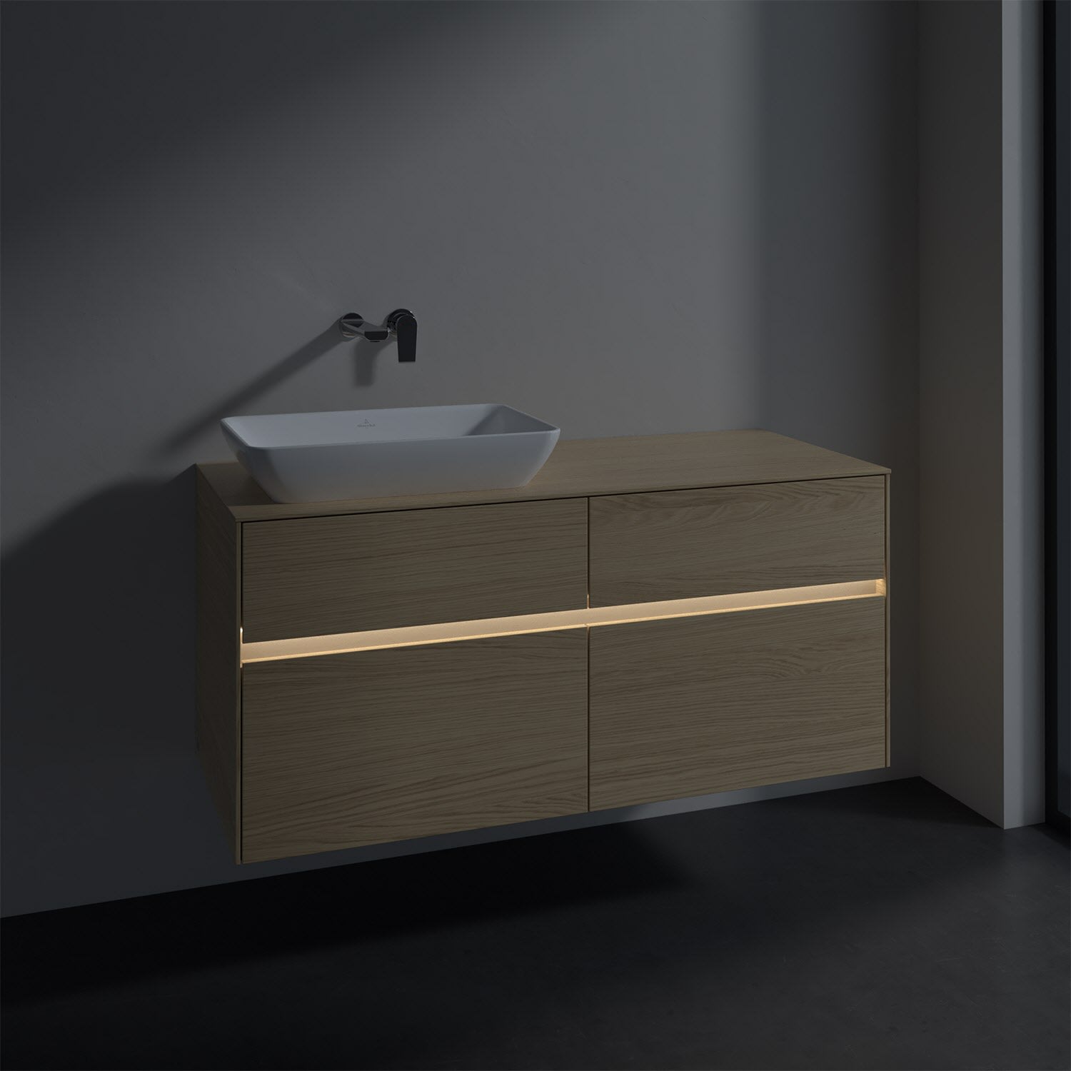 Villeroy & Boch Collaro Waschtischunterschrank 120 x 50 cm, mit 4 Auszügen und LED-Beleuchtung für Venticello Waschtisch