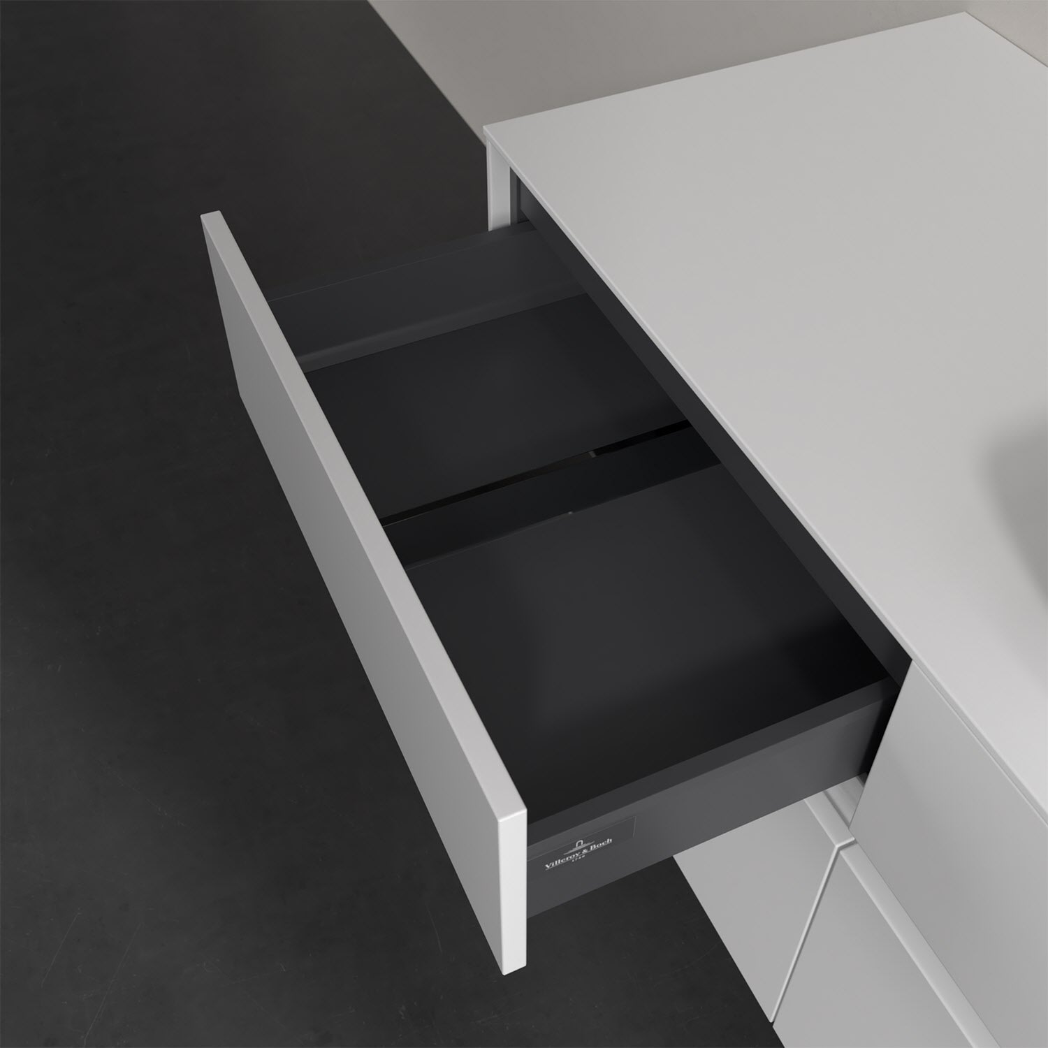 Stauraumwunder im zeitgemäßen Design: Der Villeroy & Boch Waschbeckenunterschrank aus der Collaro Kollektion eignet sich besonders für Familienbäder und bietet genau den Platz, der dort benötigt wird. Eine integrierte Griffleiste sorgt für eine schlichte, moderne Front. Steuern lässt sich das Licht über einen Touch-Sensor seitlich am Unterschrank. Im Inneren bietet das Möbelstück mit vier Auszügen erstaunlich viel Komfort – ermöglicht durch großzügiges Platzangebot und den integrierten Antirutschboden. Variabel setzbare Glasabtrennungen und mitgelieferte Accessory Boxen sorgen für den nötigen Überblick. Dank SoftClosing und Selbsteinzug lassen sich die Auszüge nach der Nutzung lautlos schließen. Für eine besonders leichte Pflege sorgt die widerstandsfähige Acryloberfläche.