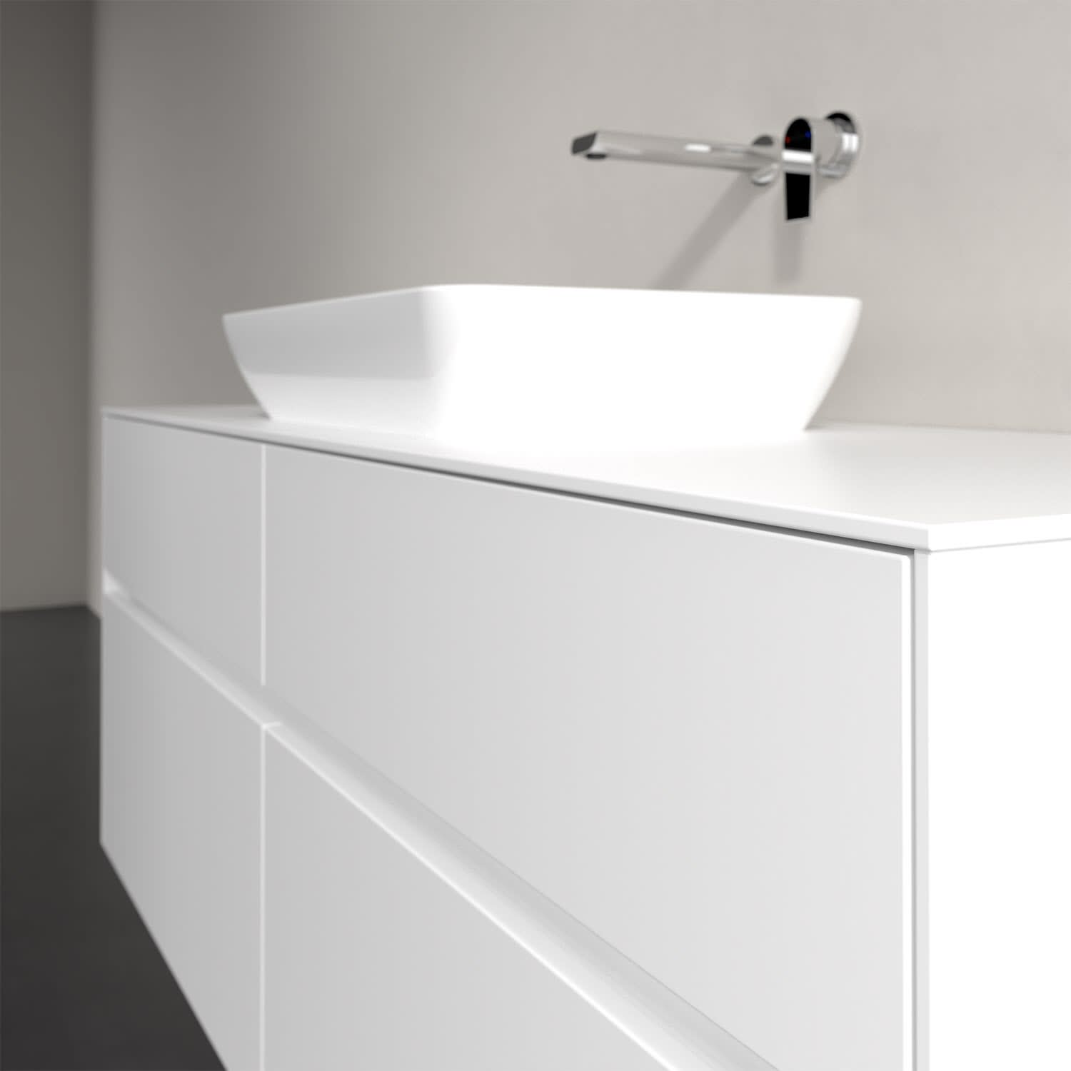 Stauraumwunder im zeitgemäßen Design: Der Villeroy & Boch Waschbeckenunterschrank aus der Collaro Kollektion eignet sich besonders für Familienbäder und bietet genau den Platz, der dort benötigt wird. Eine integrierte Griffleiste sorgt für eine schlichte, moderne Front. Im Inneren bietet das Möbelstück mit vier Auszügen erstaunlich viel Komfort – ermöglicht durch großzügiges Platzangebot und den integrierten Antirutschboden. Variabel setzbare Glasabtrennungen und mitgelieferte Accessory Boxen sorgen für den nötigen Überblick. Dank SoftClosing und Selbsteinzug lassen sich die Auszüge nach der Nutzung lautlos schließen. Für eine besonders leichte Reinigung sorgt die pflegeleichte Direktbeschichtung.
