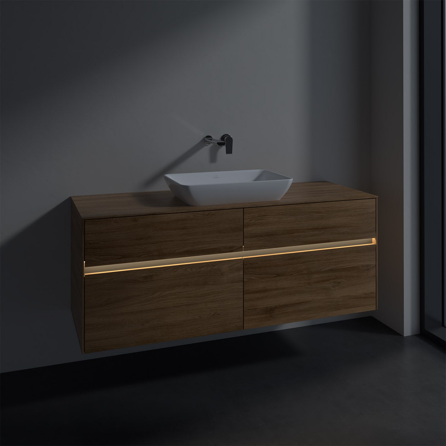Villeroy & Boch Collaro Waschtischunterschrank 140 x 50 cm, mit 4 Auszügen und LED-Beleuchtung für Venticello Waschtisch