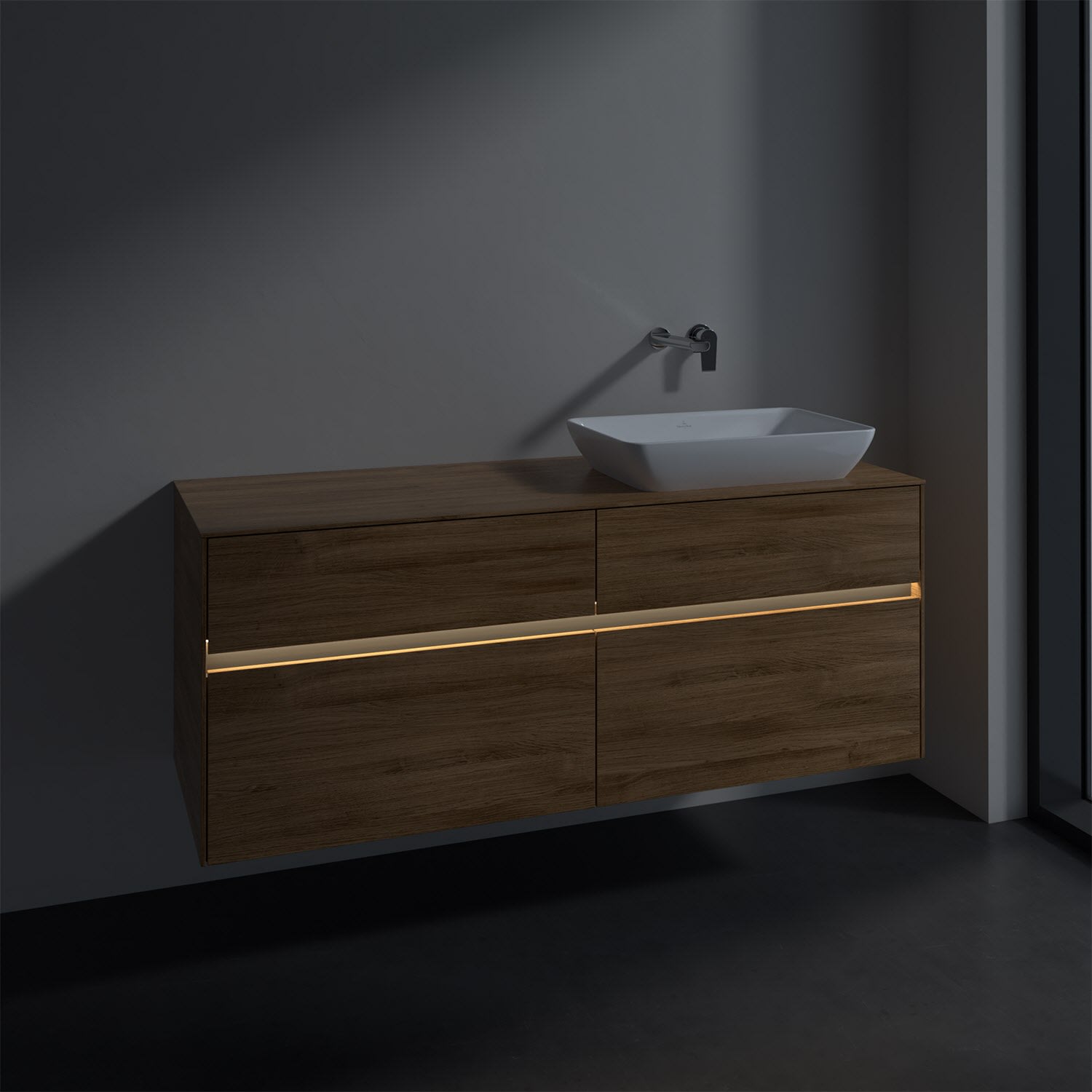 Villeroy & Boch Collaro Waschtischunterschrank 140 x 50 cm, mit 4 Auszügen und LED-Beleuchtung für Venticello Waschtisch