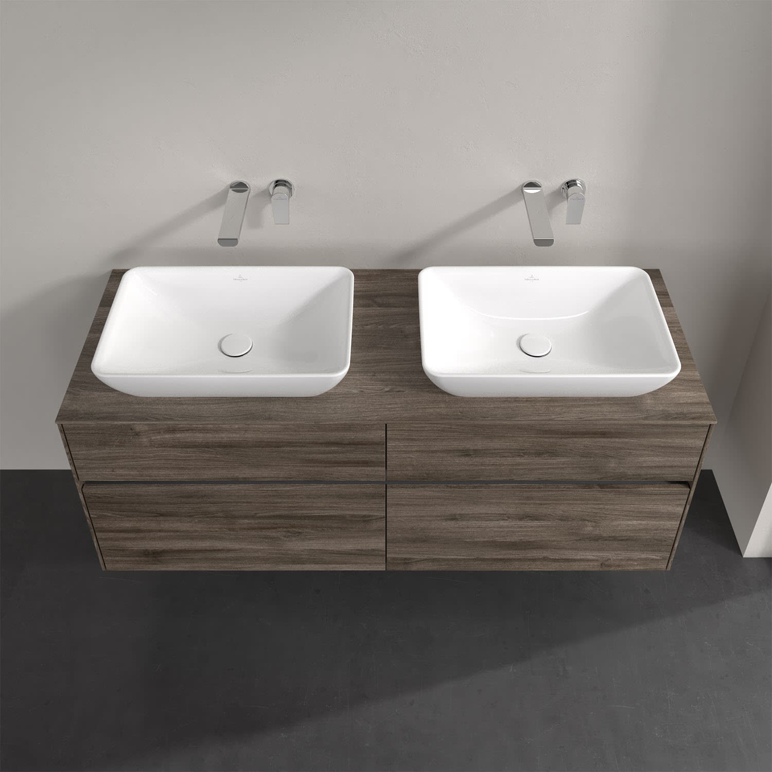 Villeroy & Boch Collaro Waschtischunterschrank 140 x 50 cm, mit 4 Auszügen und LED-Beleuchtung für 2 Venticello Waschtische