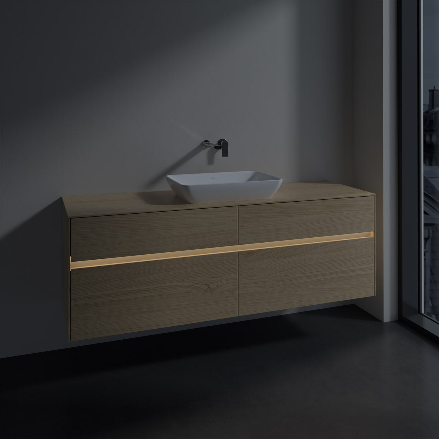 Villeroy & Boch Collaro Waschtischunterschrank 160 x 50 cm, mit 4 Auszügen und LED-Beleuchtung für Venticello Waschtisch