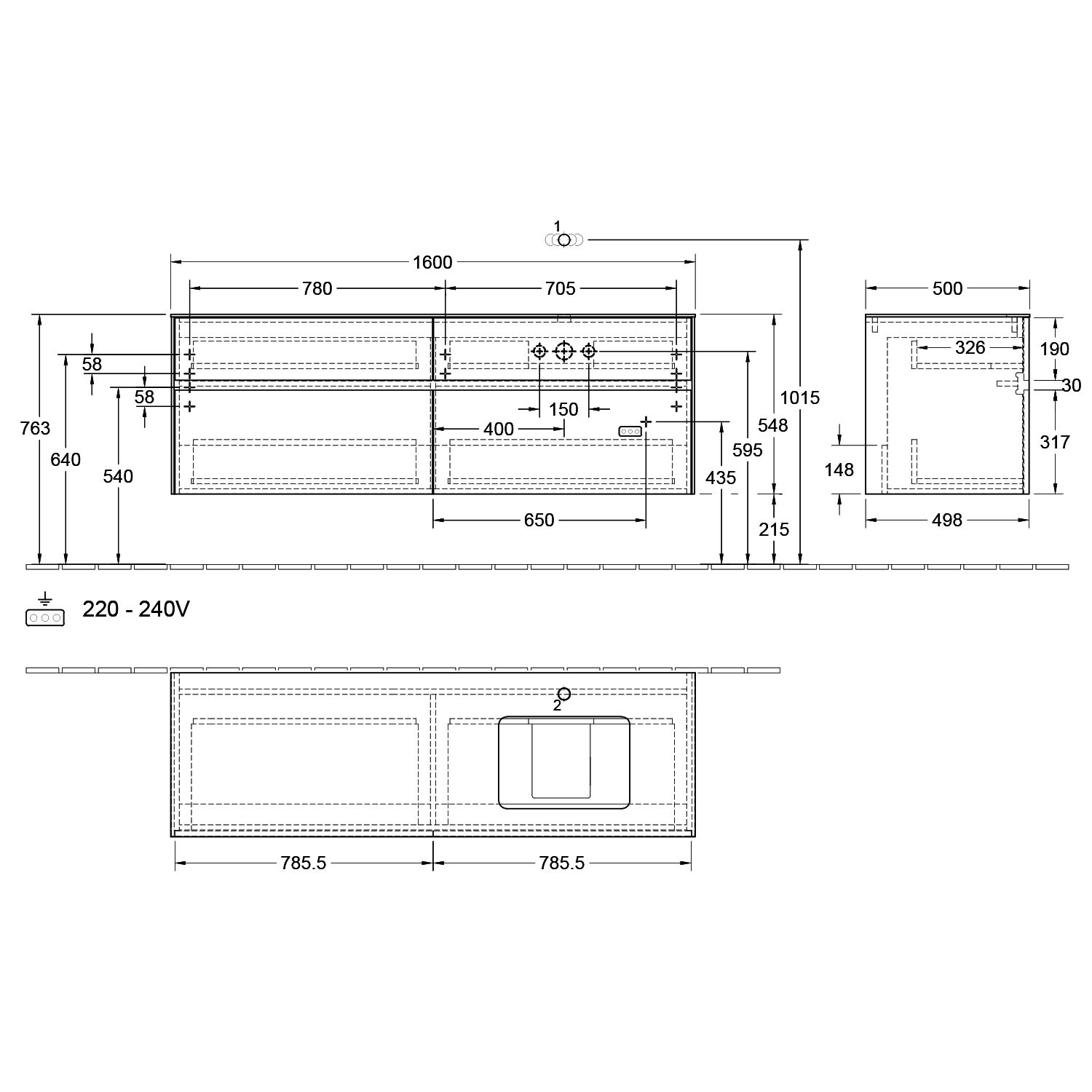 - Waschtischmontage rechts
