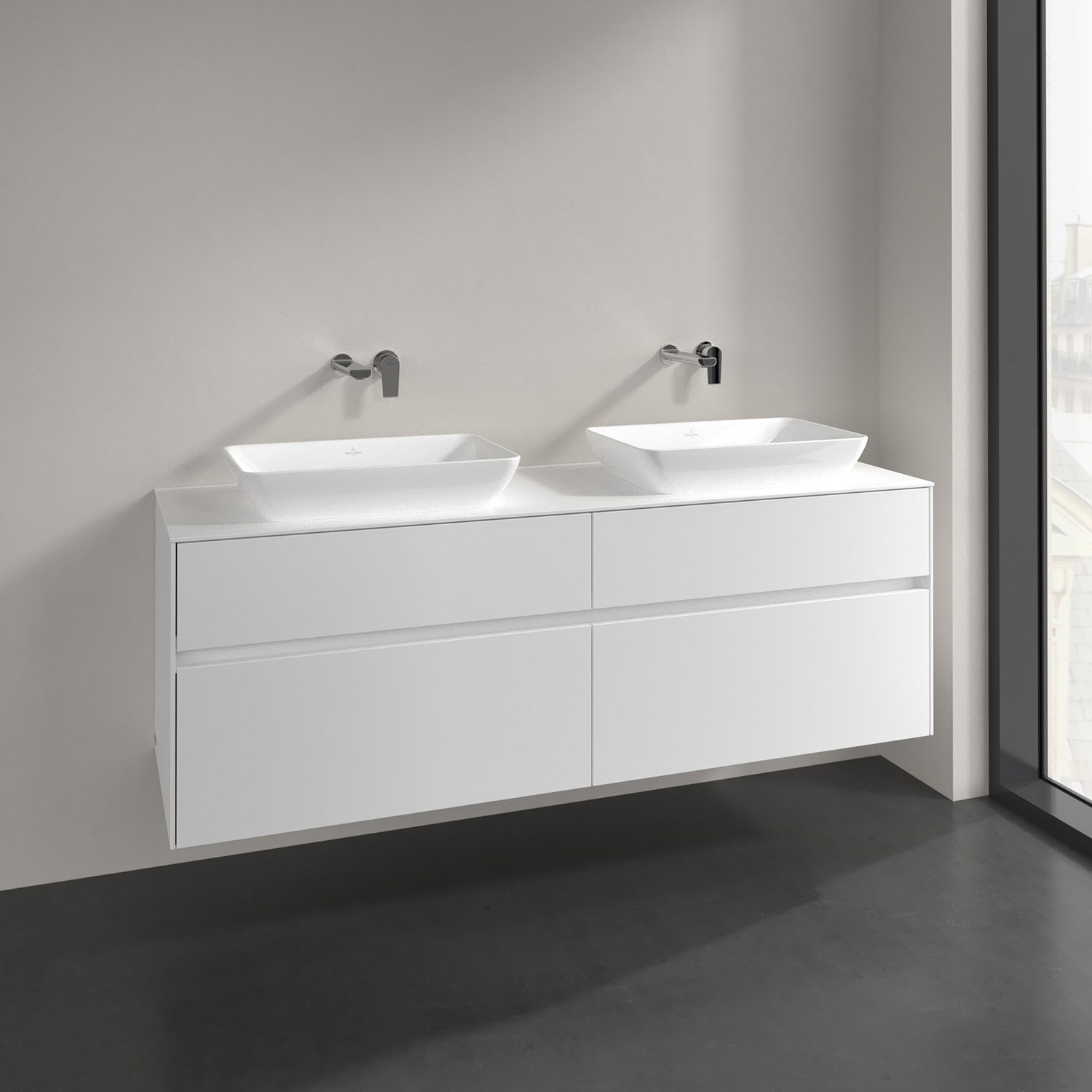 Villeroy & Boch Collaro Waschtischunterschrank 160 x 50 cm, mit 4 Auszügen für 2 Venticello Waschtische