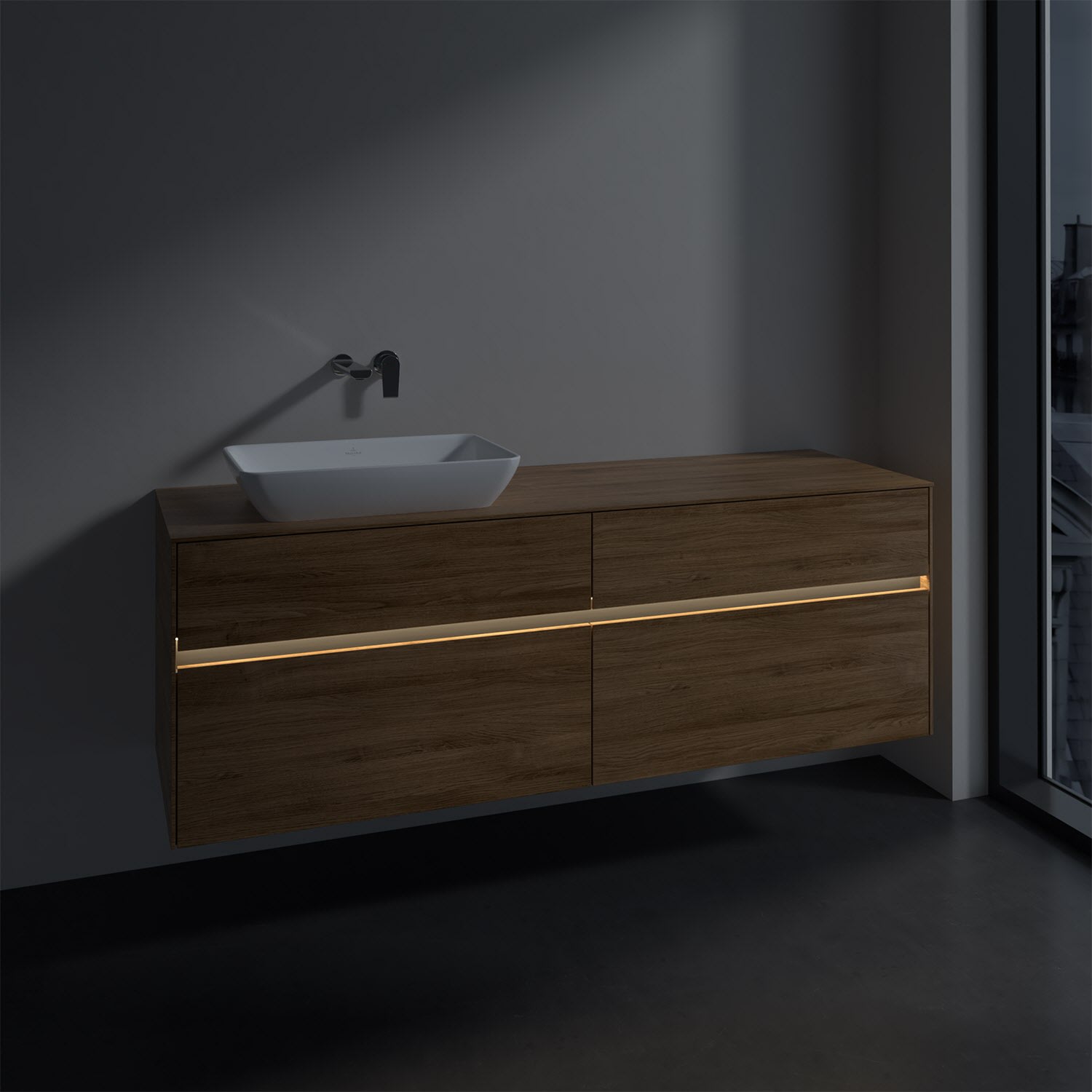 Villeroy & Boch Collaro Waschtischunterschrank 160 x 50 cm, mit 4 Auszügen und LED-Beleuchtung für Venticello Waschtisch