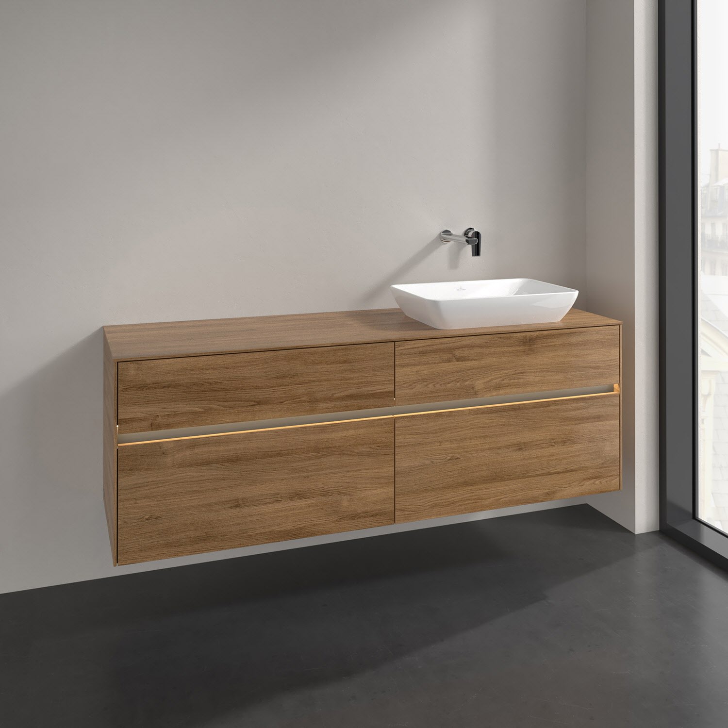 Villeroy & Boch Collaro Waschtischunterschrank 160 x 50 cm, mit 4 Auszügen und LED-Beleuchtung für Venticello Waschtisch