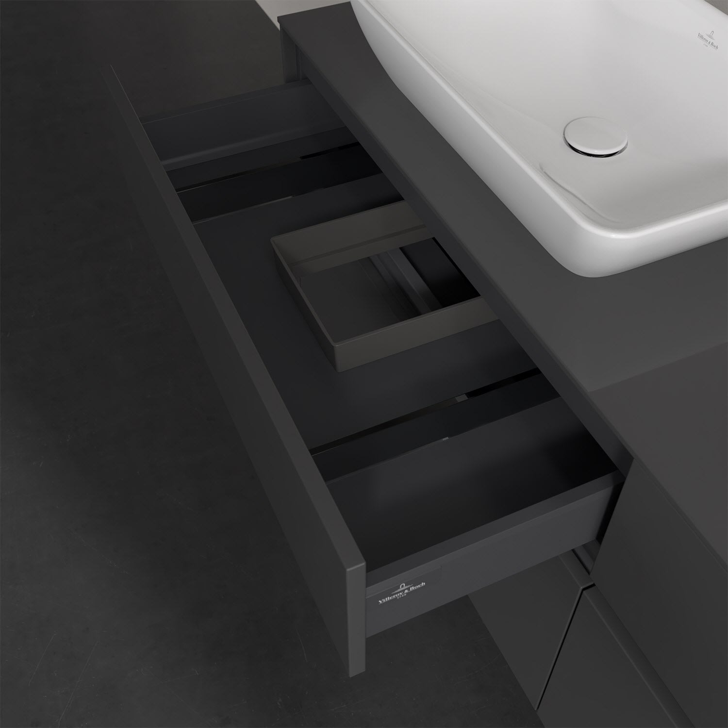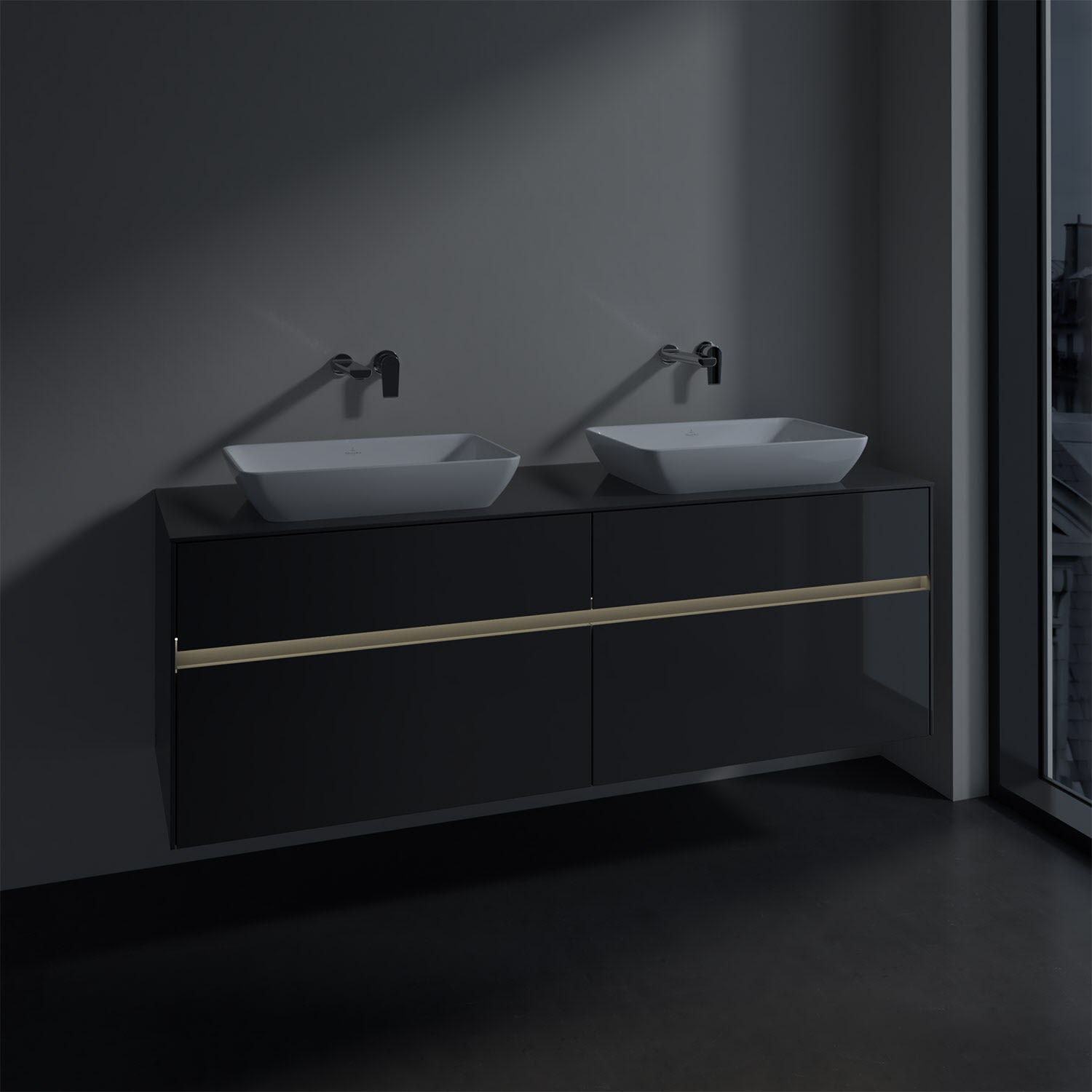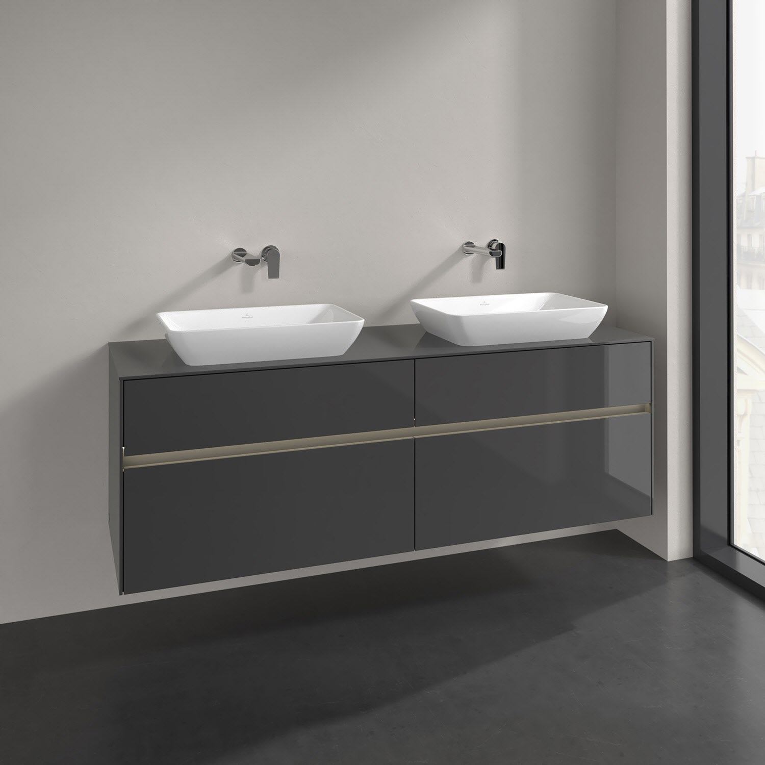 Villeroy & Boch Collaro Waschtischunterschrank 160 x 50 cm, mit 4 Auszügen und LED-Beleuchtung für 2 Venticello Waschtische