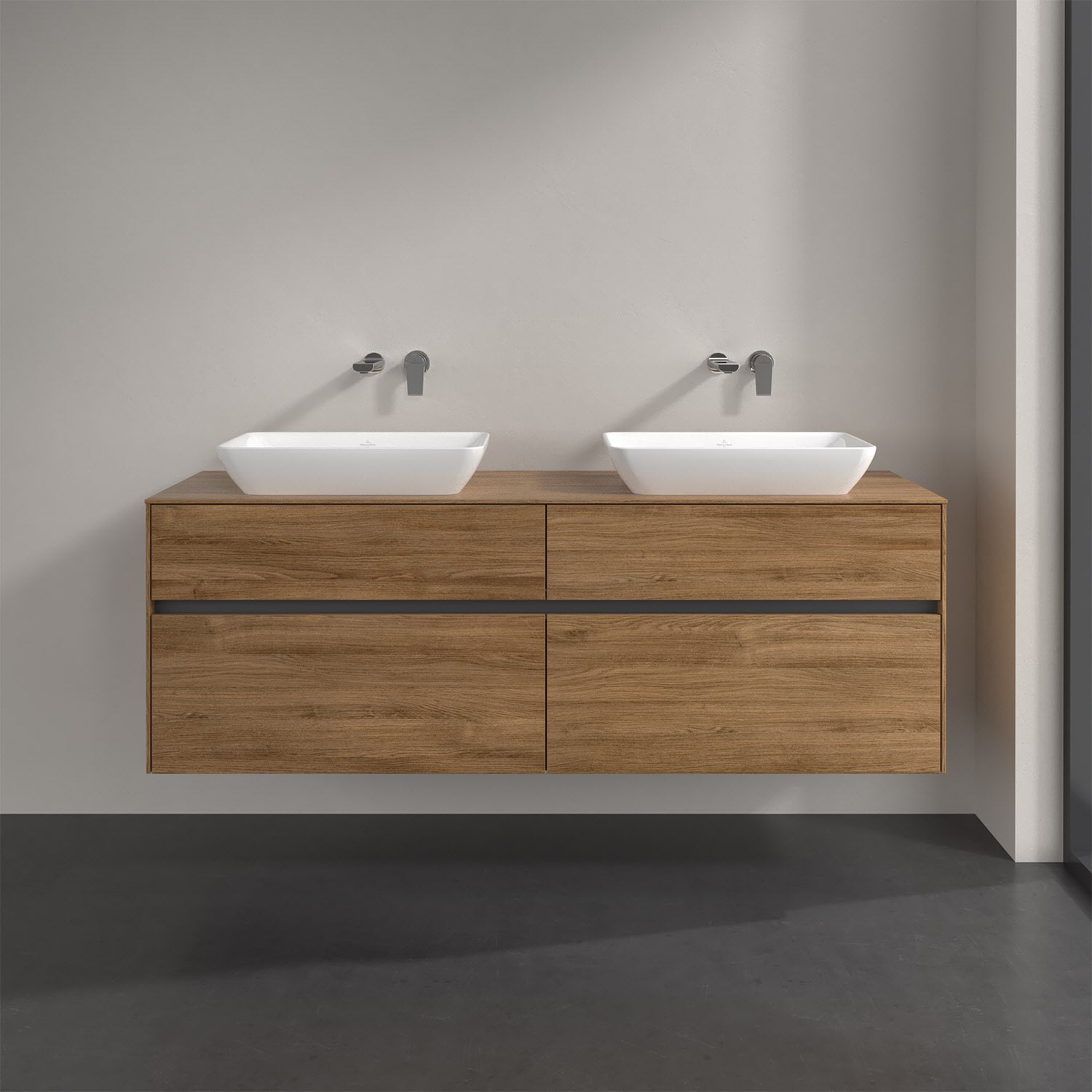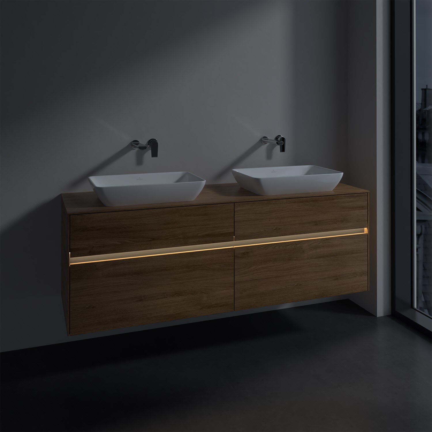 Villeroy & Boch Collaro Waschtischunterschrank 160 x 50 cm, mit 4 Auszügen und LED-Beleuchtung für 2 Venticello Waschtische