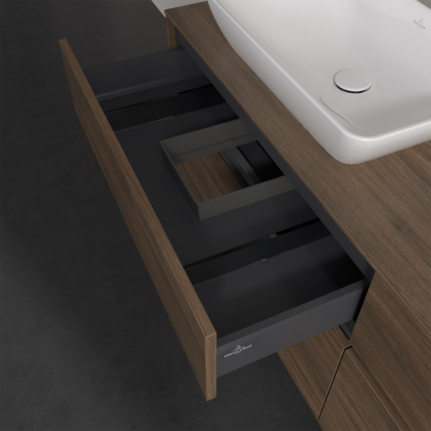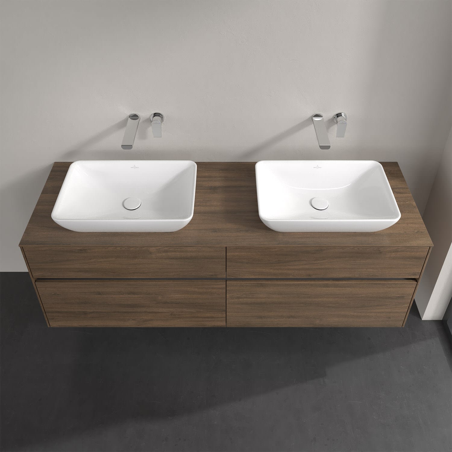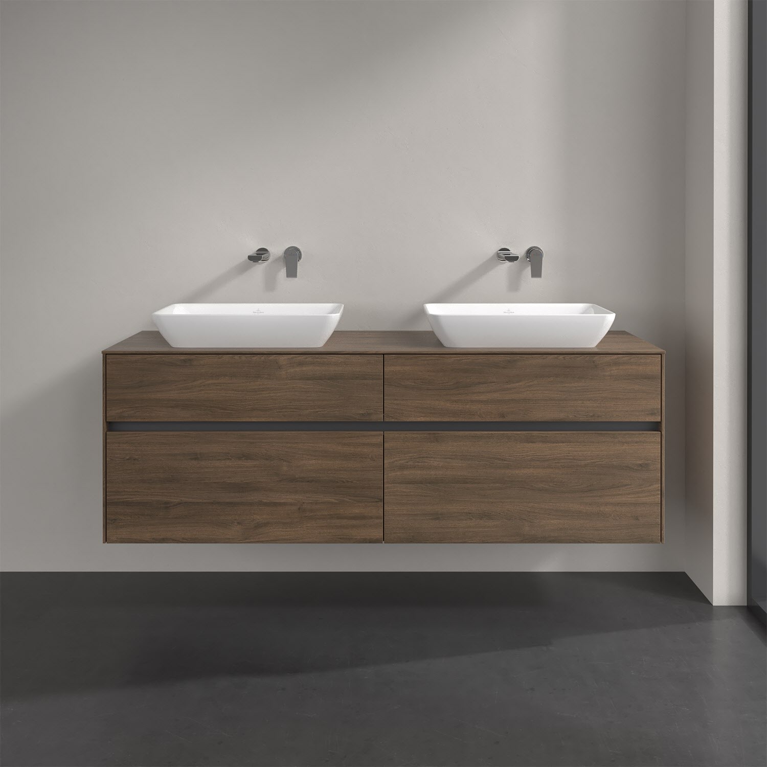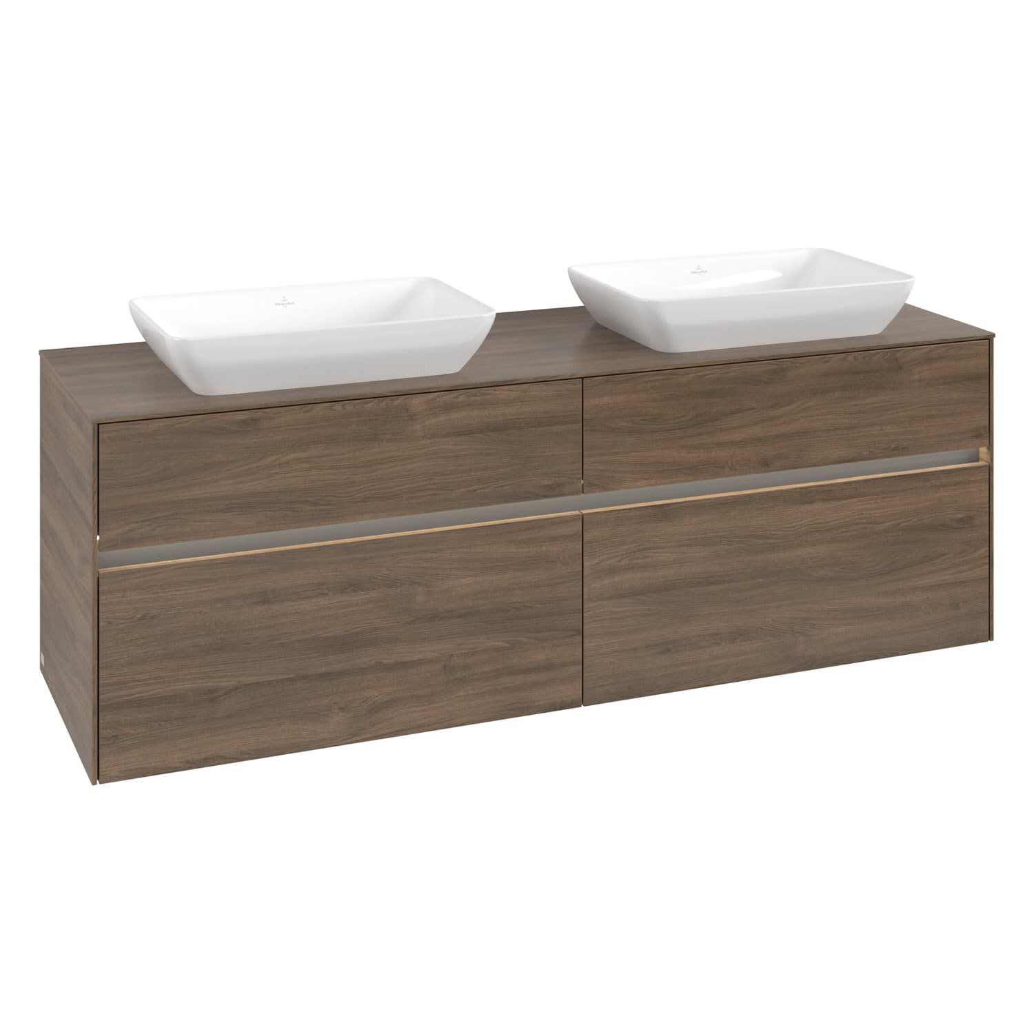 Villeroy & Boch Collaro Waschtischunterschrank 160 x 50 cm, mit 4 Auszügen und LED-Beleuchtung für 2 Venticello Waschtische