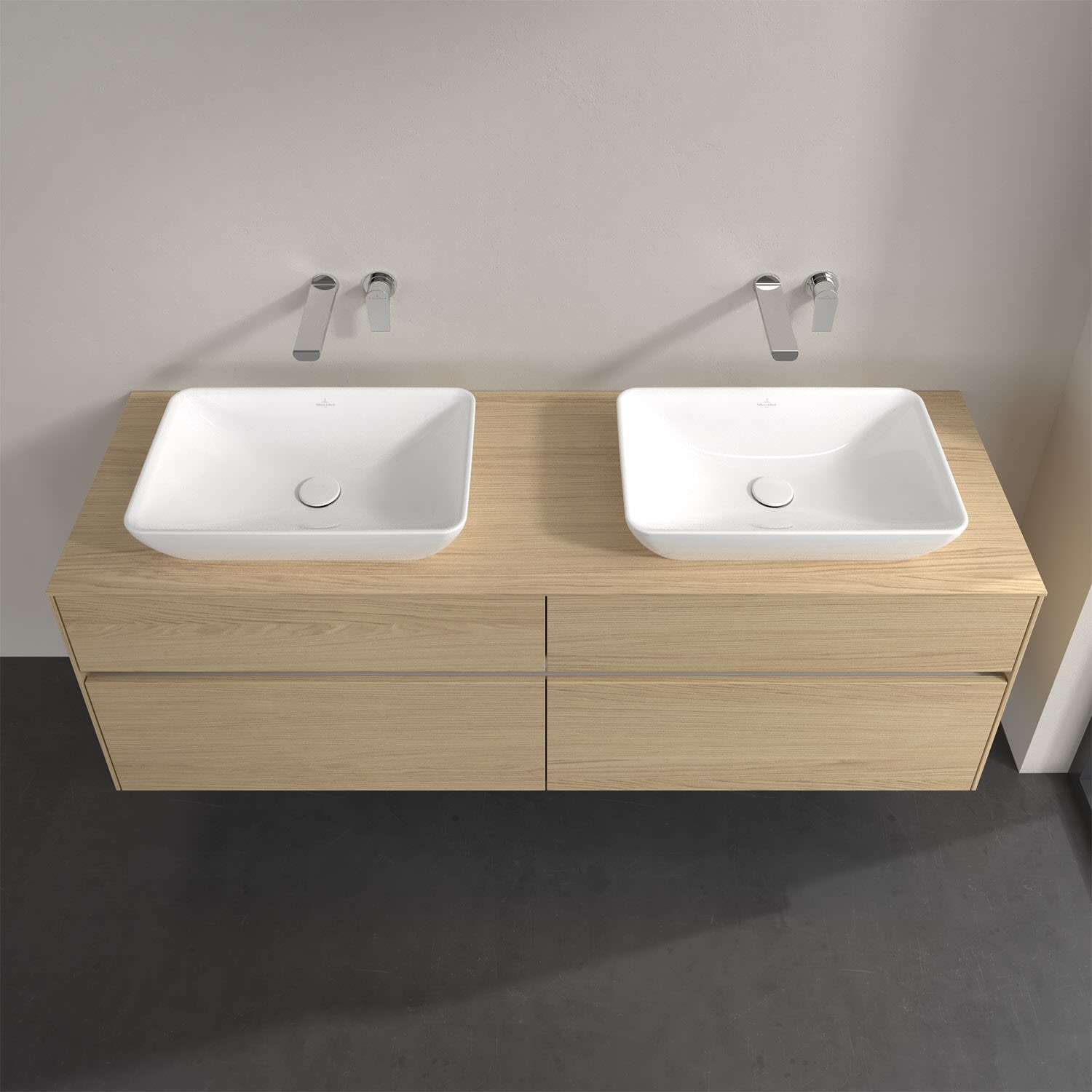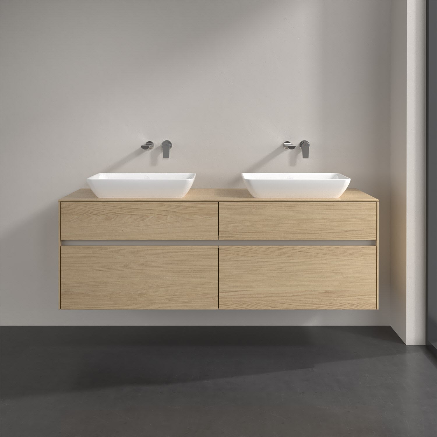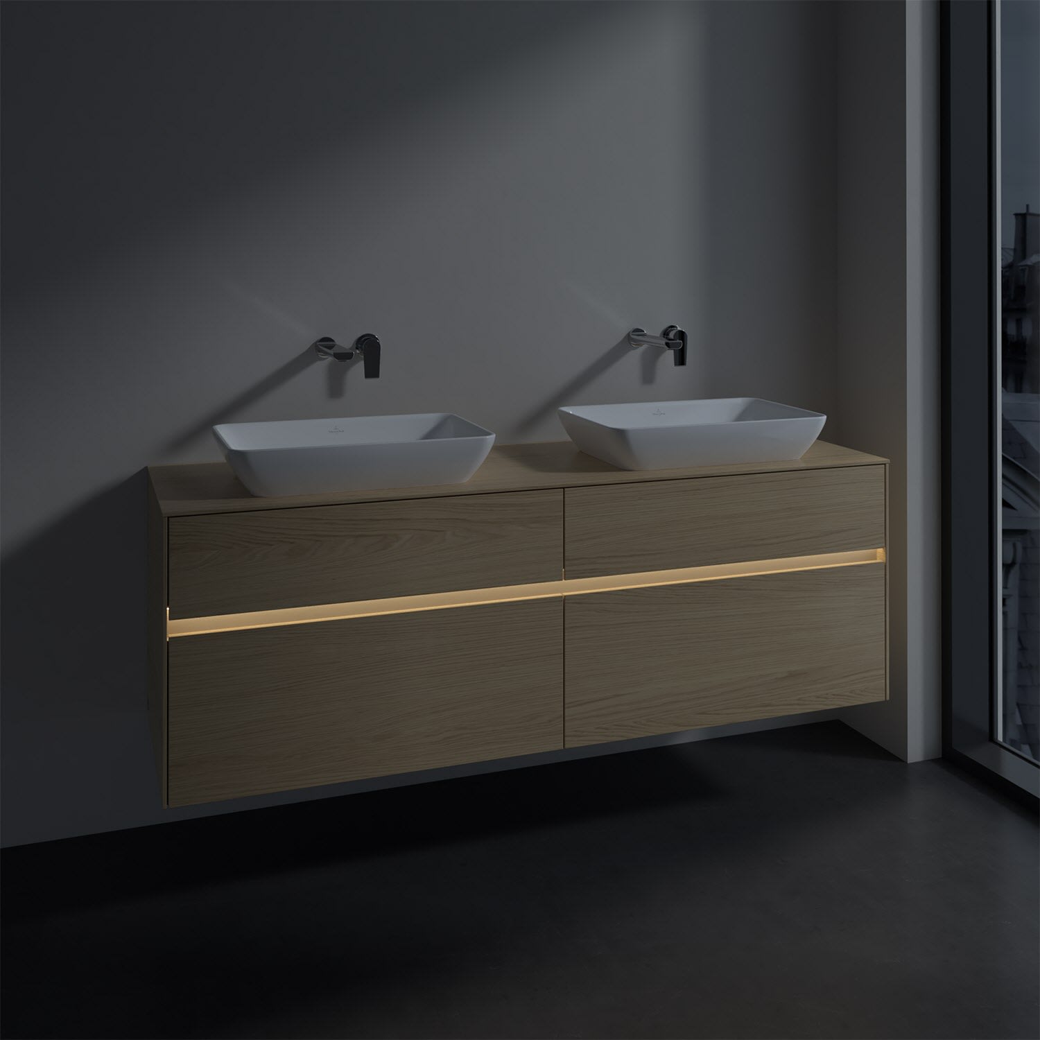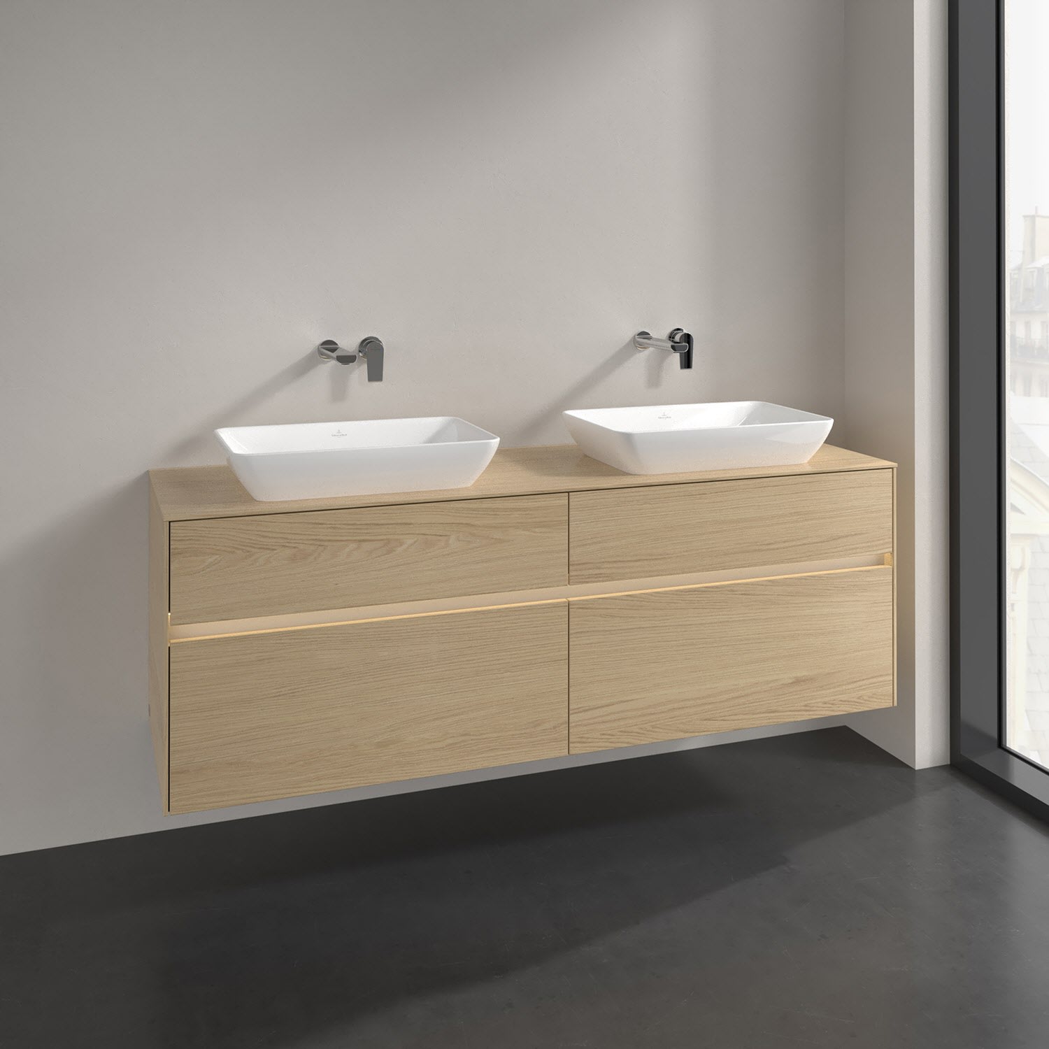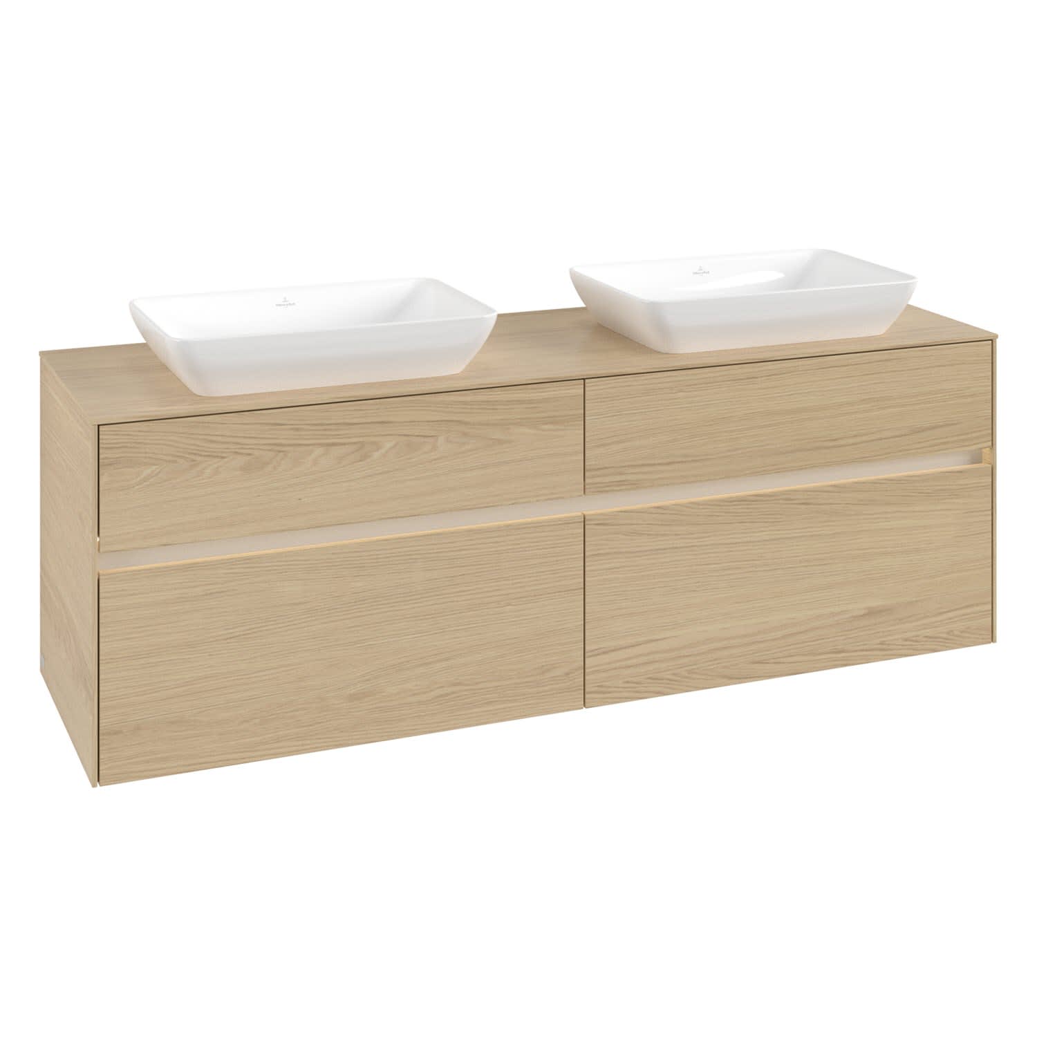 Villeroy & Boch Collaro Waschtischunterschrank 160 x 50 cm, mit 4 Auszügen und LED-Beleuchtung für 2 Venticello Waschtische