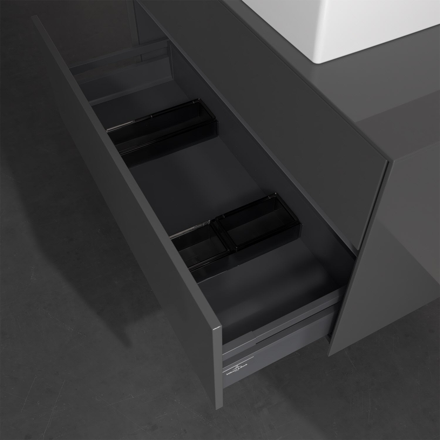 Zeitgemäßes Design und feine Linien: Der Villeroy & Boch Waschbeckenunterschrank aus der Collaro Kollektion mit zwei Auszügen glänzt mit vielen Vorzügen. Eine integrierte Griffleiste sorgt für eine schlichte, moderne Front. Im Inneren bietet das Möbelstück erstaunlich viel Komfort – ermöglicht durch großzügigen Stauraum und den integrierten Antirutschboden. Die variabel setzbaren Glasabtrennungen und die mitgelieferte Accessory Box bieten Badutensilien ausreichend Platz und sorgen für den nötigen Überblick. Dank SoftClosing und Selbsteinzug lassen sich die Auszüge nach der Nutzung lautlos schließen. Für eine besonders leichte Pflege sorgt die widerstandsfähige Acryloberfläche.