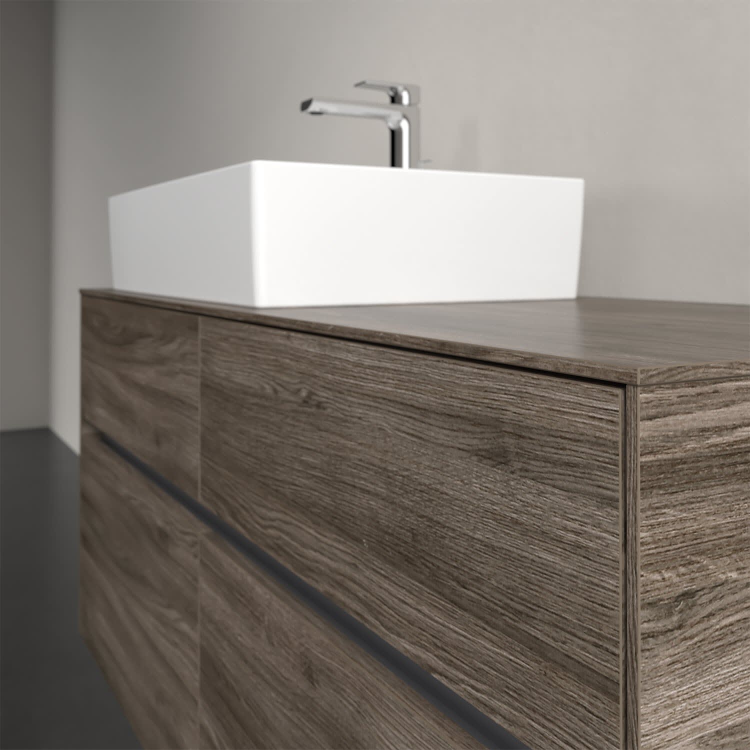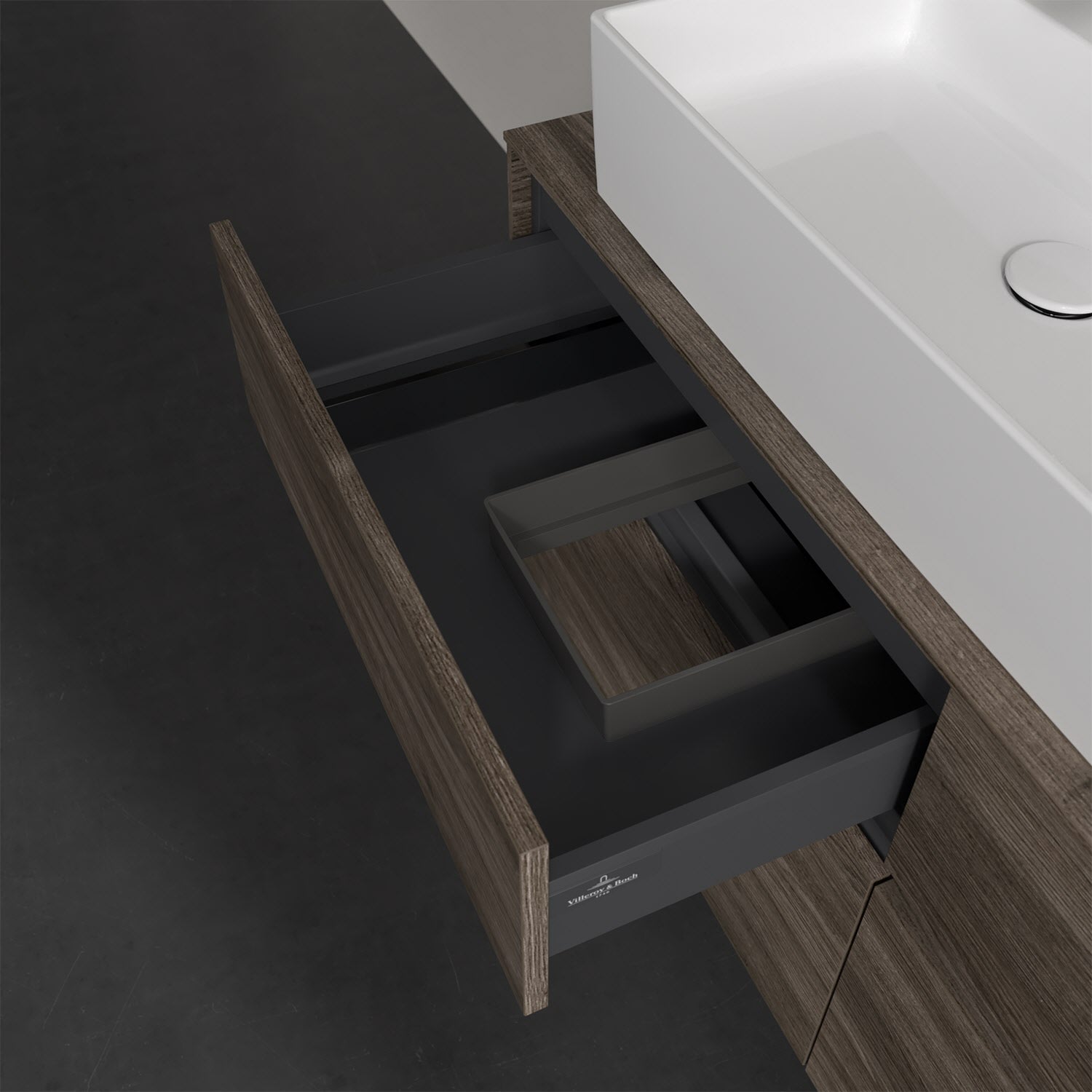 Stauraumwunder im zeitgemäßen Design: Der Villeroy & Boch Waschbeckenunterschrank aus der Collaro Kollektion eignet sich besonders für Familienbäder und bietet genau den Platz, der dort benötigt wird. Eine integrierte Griffleiste sorgt für eine schlichte, moderne Front. Steuern lässt sich das Licht über einen Touch-Sensor seitlich am Unterschrank. Im Inneren bietet das Möbelstück mit vier Auszügen erstaunlich viel Komfort – ermöglicht durch großzügiges Platzangebot und den integrierten Antirutschboden. Variabel setzbare Glasabtrennungen und mitgelieferte Accessory Boxen sorgen für den nötigen Überblick. Dank SoftClosing und Selbsteinzug lassen sich die Auszüge nach der Nutzung lautlos schließen. Für eine besonders leichte Reinigung sorgt die pflegeleichte Direktbeschichtung.