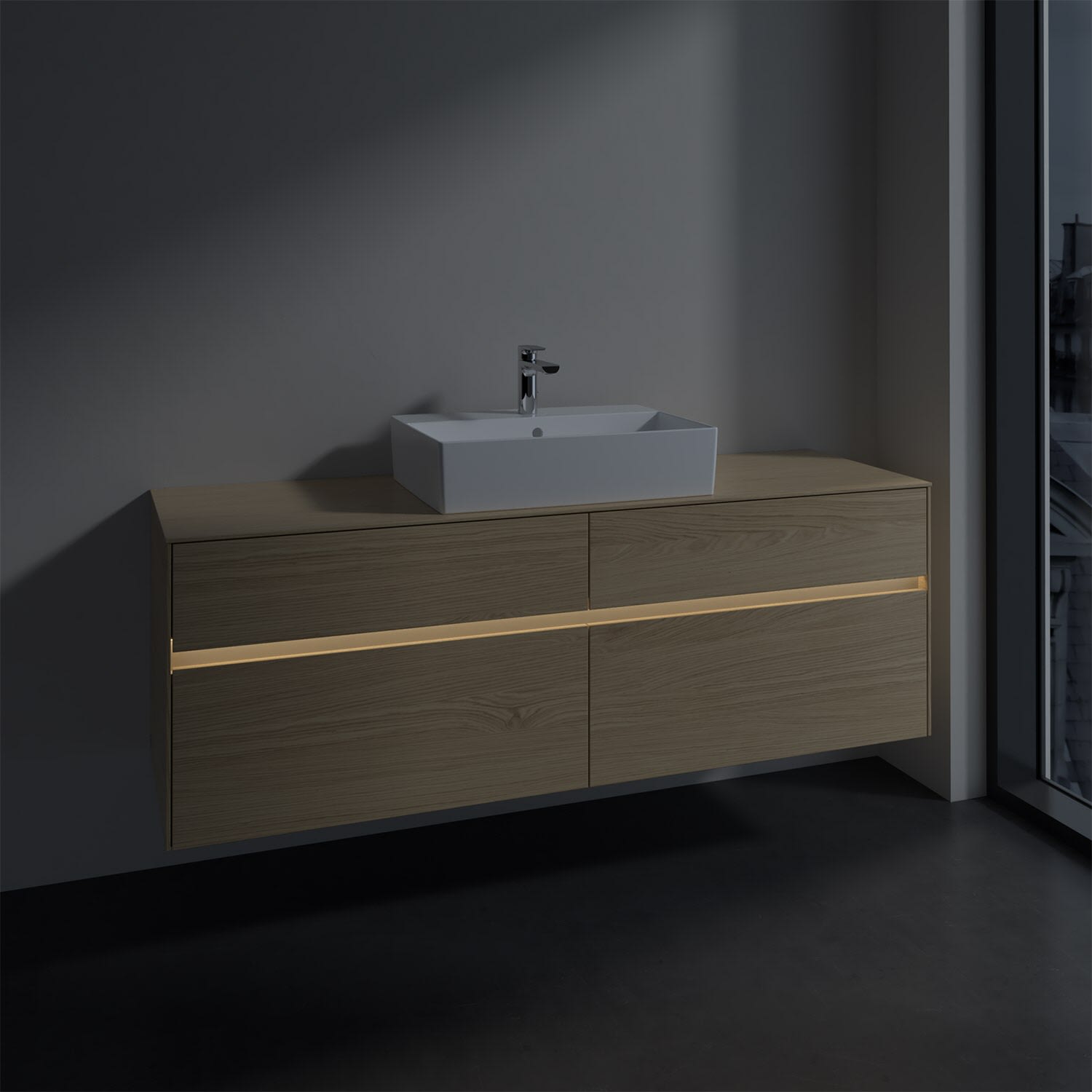 Villeroy & Boch Collaro Waschtischunterschrank 160 x 50 cm, mit 4 Auszügen und LED-Beleuchtung