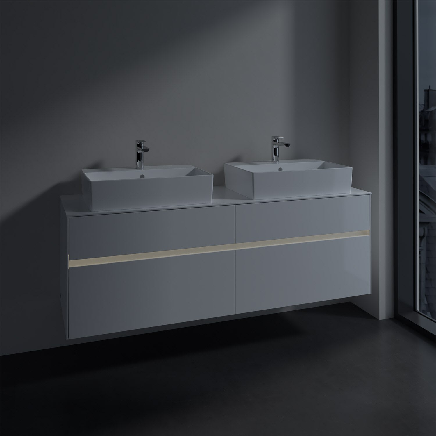 Villeroy & Boch Collaro Waschtischunterschrank 160 x 50 cm, mit 4 Auszügen und LED-Beleuchtung für 2 Waschtische