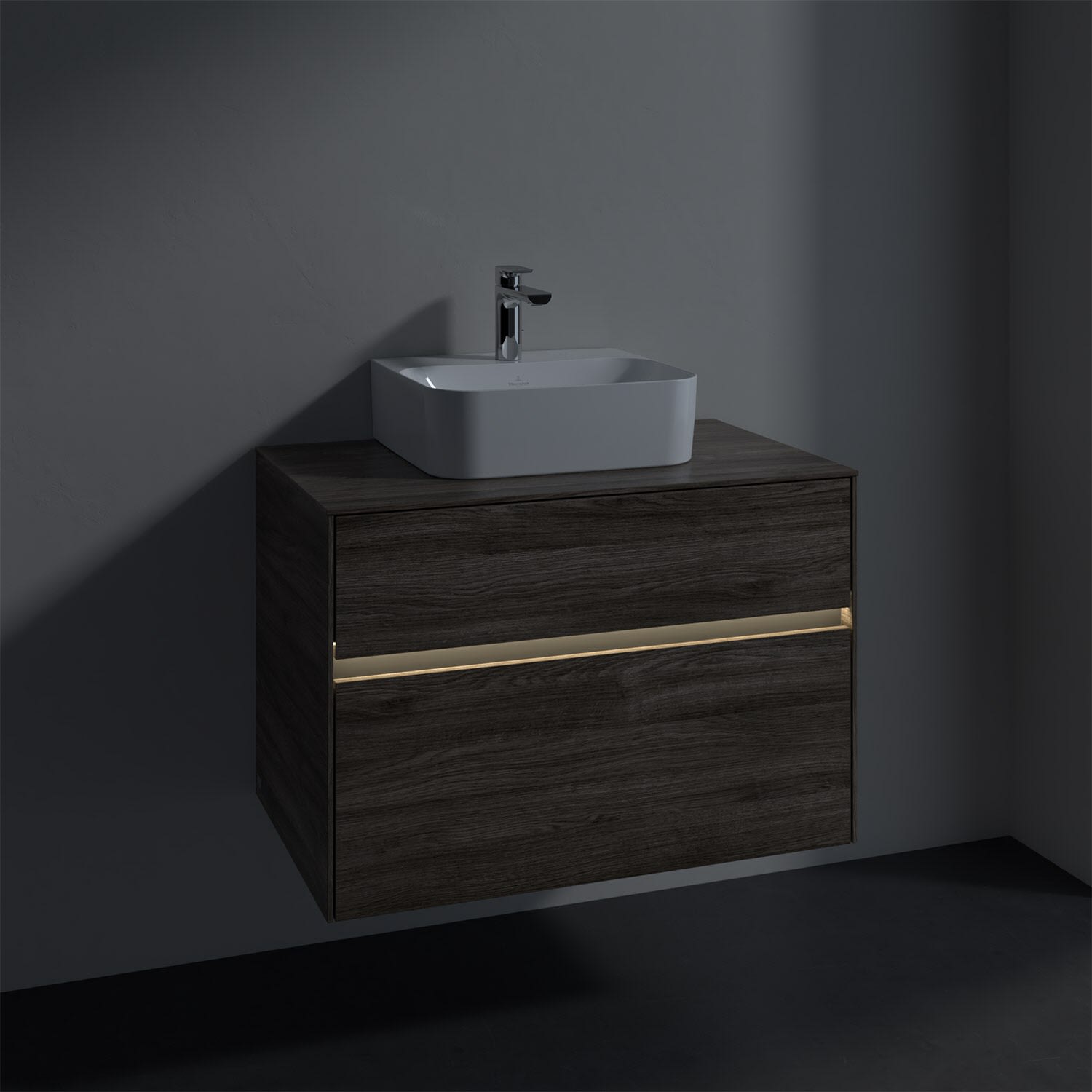 Villeroy & Boch Collaro Waschtischunterschrank 80 x 50 cm, mit 2 Auszügen und LED-Beleuchtung für Finion Waschtisch