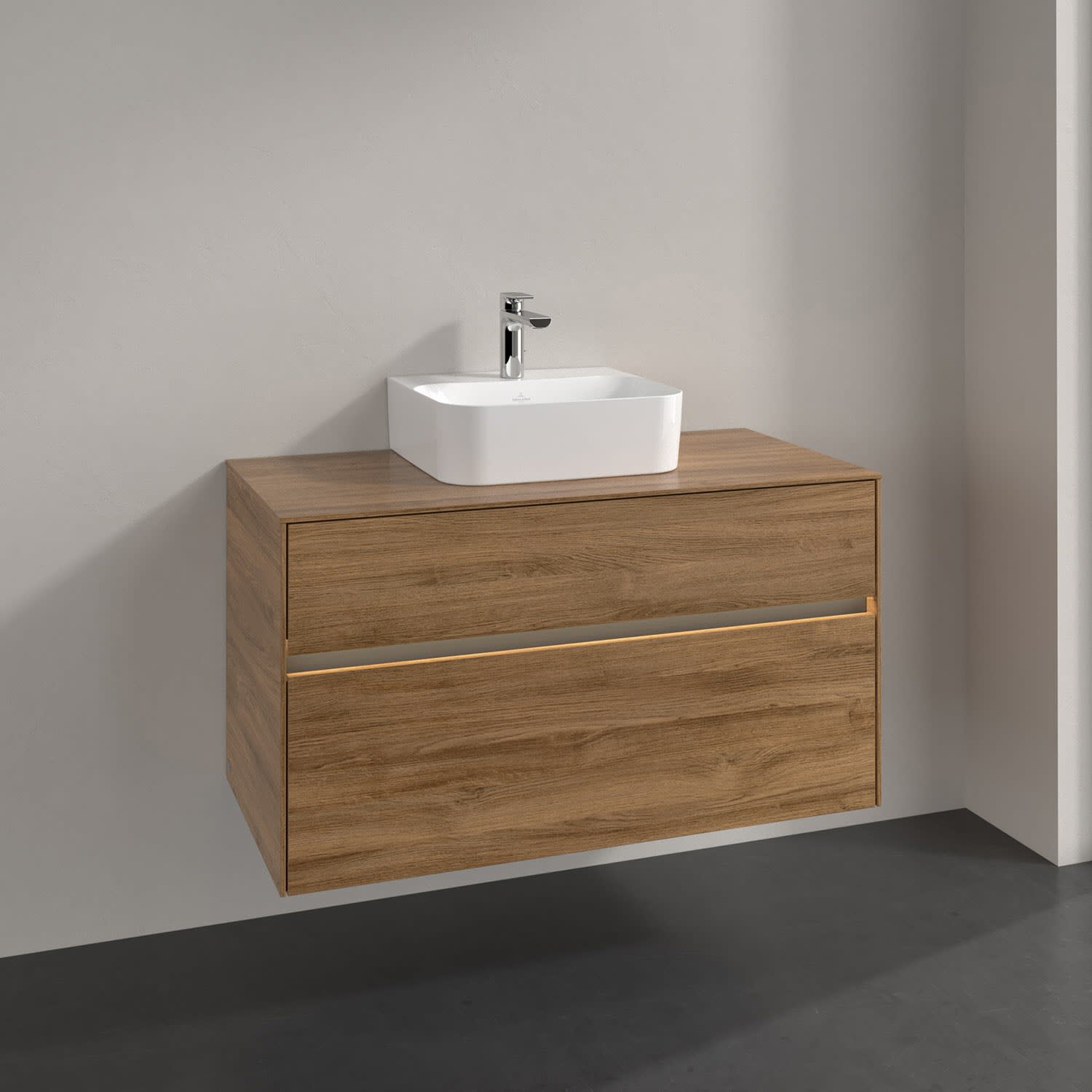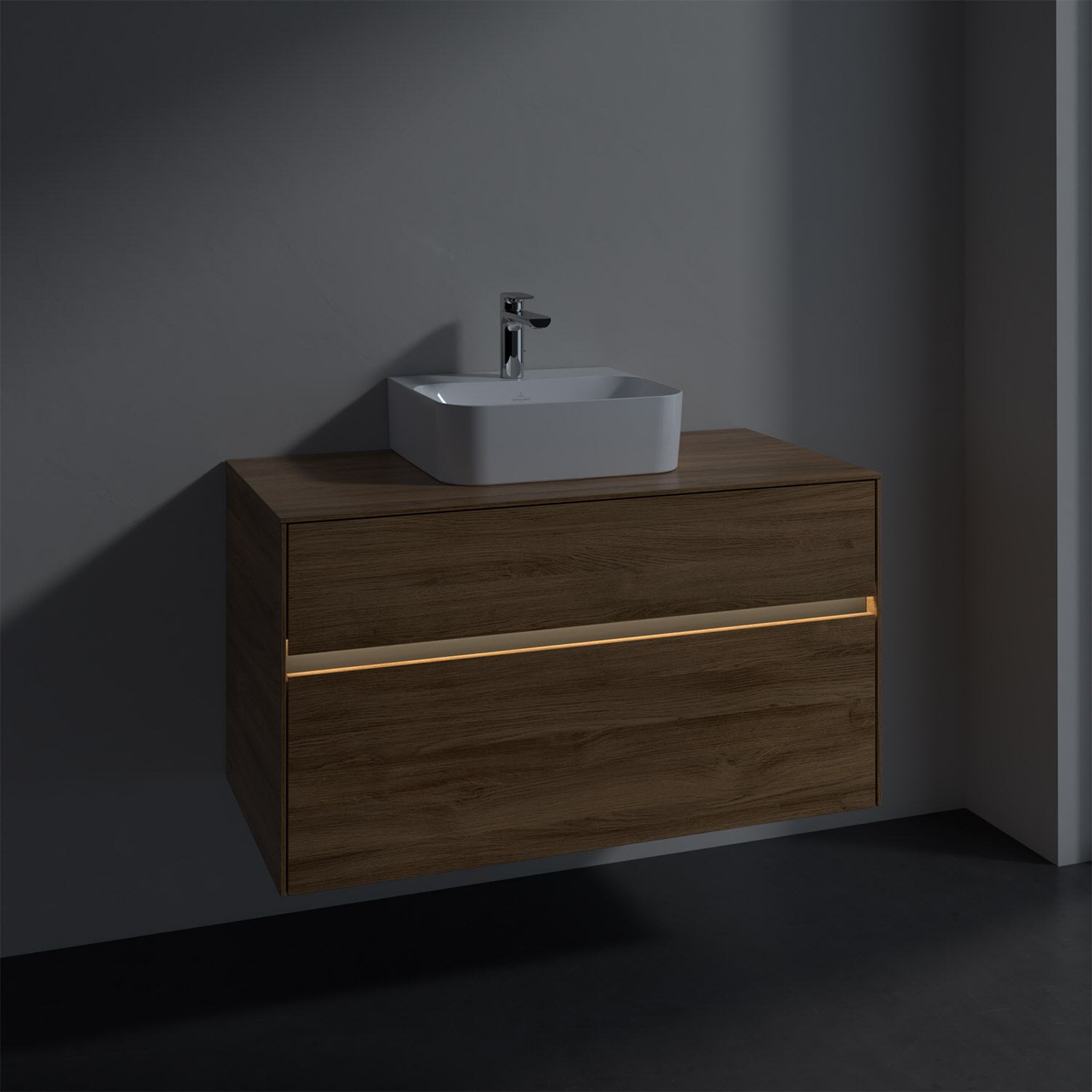 Villeroy & Boch Collaro Waschtischunterschrank 100 x 50 cm, mit 2 Auszügen und LED-Beleuchtung für Finion Waschtisch