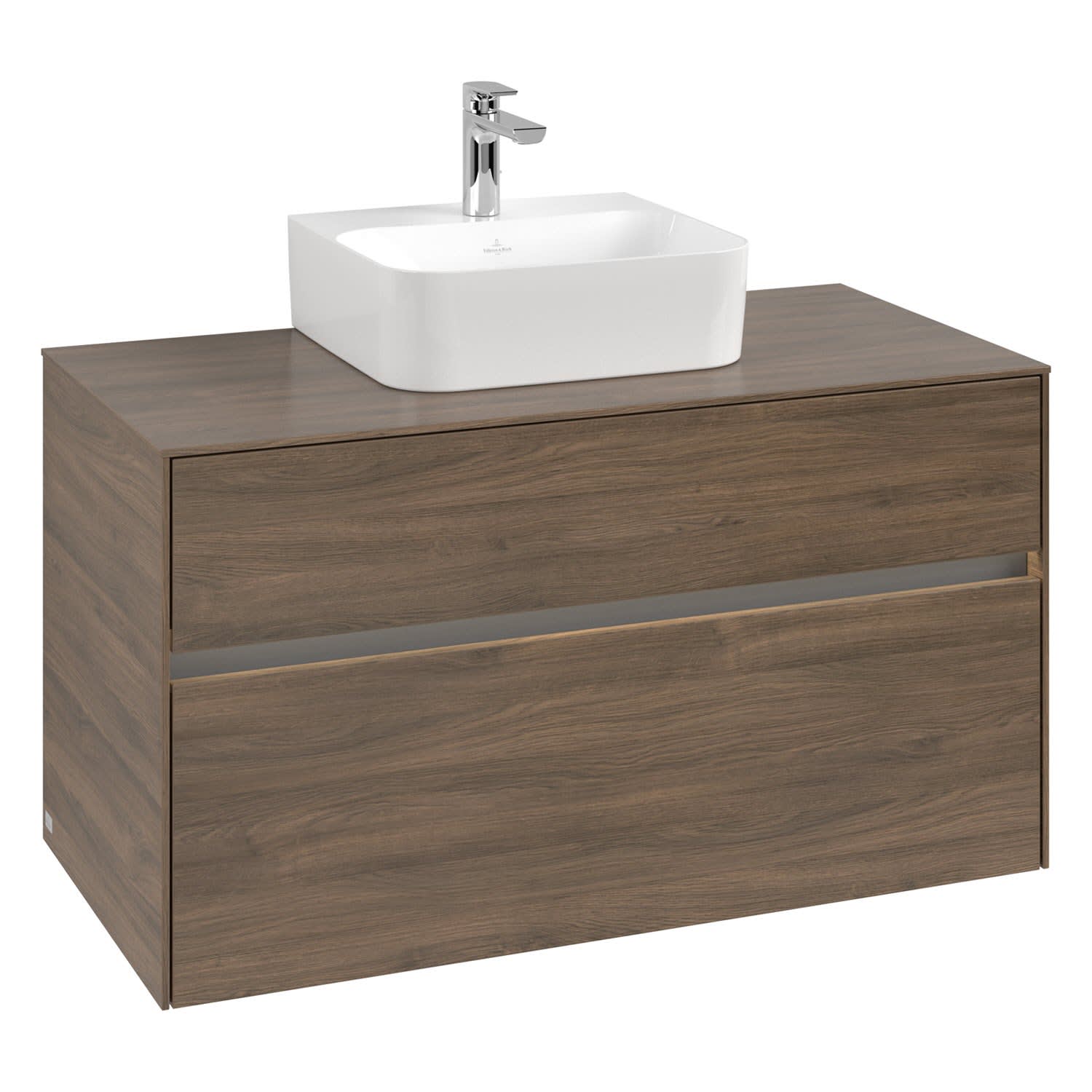 Villeroy & Boch Collaro Waschtischunterschrank 100 x 50 cm, mit 2 Auszügen und LED-Beleuchtung für Finion Waschtisch