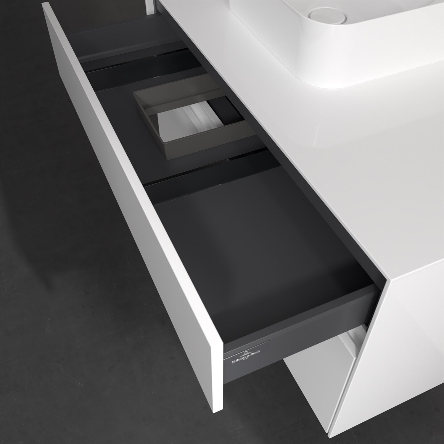 Zeitgemäßes Design und feine Linien: Der Villeroy & Boch Waschbeckenunterschrank aus der Collaro Kollektion mit zwei Auszügen glänzt mit vielen Vorzügen. Eine integrierte Griffleiste sorgt für eine schlichte, moderne Front. Im Inneren bietet das Möbelstück erstaunlich viel Komfort – ermöglicht durch großzügigen Stauraum und den integrierten Antirutschboden. Die variabel setzbaren Glasabtrennungen und die mitgelieferte Accessory Box bieten Badutensilien ausreichend Platz und sorgen für den nötigen Überblick. Dank SoftClosing und Selbsteinzug lassen sich die Auszüge nach der Nutzung lautlos schließen. Für eine besonders leichte Pflege sorgt die widerstandsfähige Acryloberfläche.