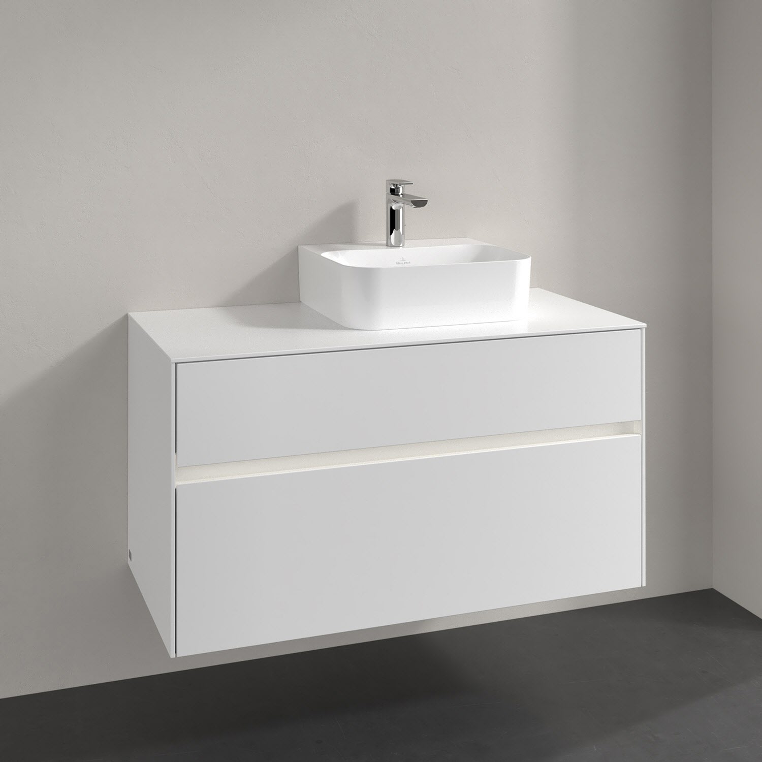 Villeroy & Boch Collaro Waschtischunterschrank 100 x 50 cm, mit 2 Auszügen und LED-Beleuchtung für Finion Waschtisch