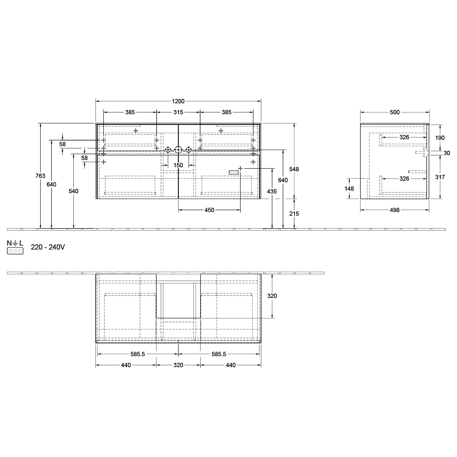 Villeroy & Boch Collaro Waschtischunterschrank 120 x 50 cm, mit 4 Auszügen für Finion Waschtisch