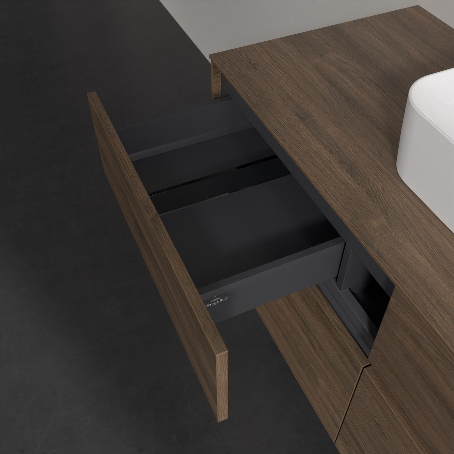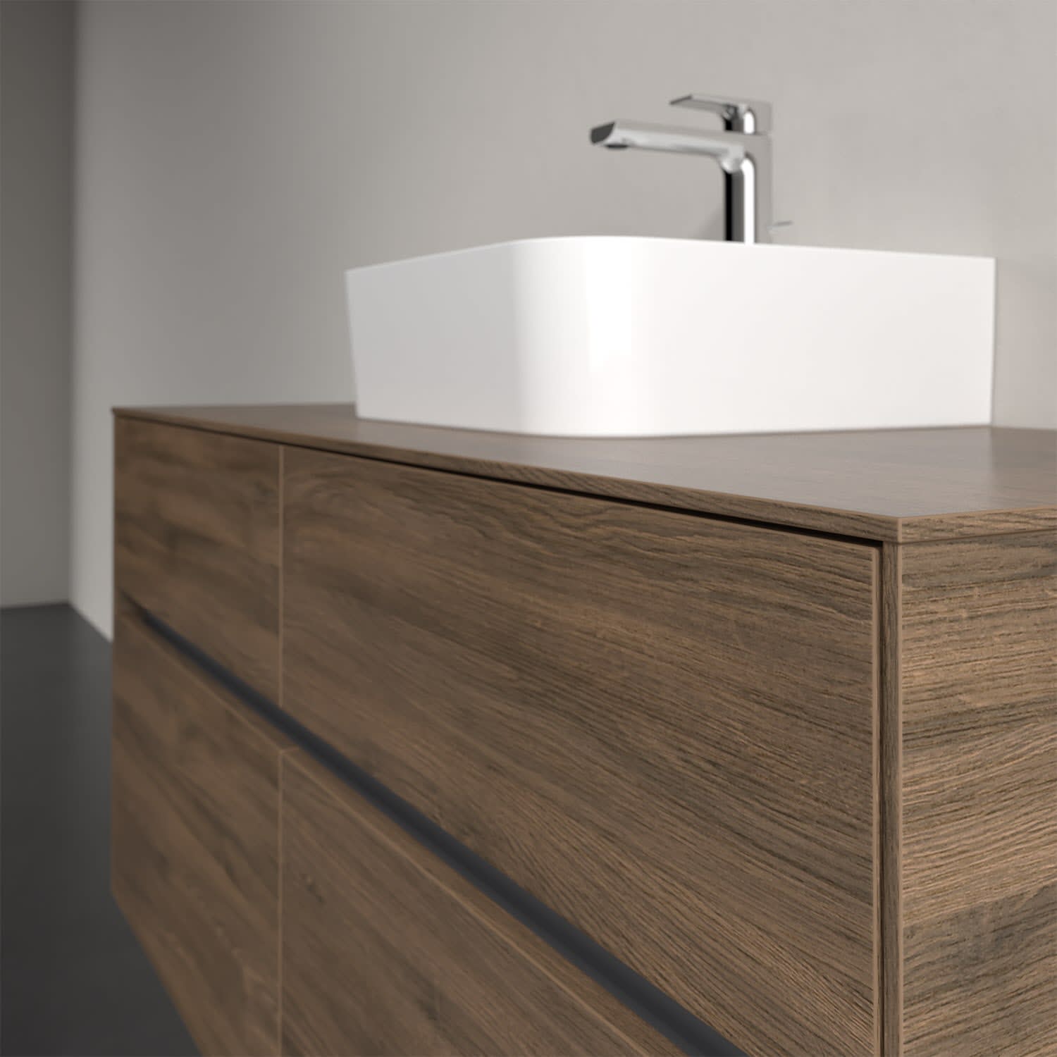 Stauraumwunder im zeitgemäßen Design: Der Villeroy & Boch Waschbeckenunterschrank aus der Collaro Kollektion eignet sich besonders für Familienbäder und bietet genau den Platz, der dort benötigt wird. Eine integrierte Griffleiste sorgt für eine schlichte, moderne Front. Im Inneren bietet das Möbelstück mit vier Auszügen erstaunlich viel Komfort – ermöglicht durch großzügiges Platzangebot und den integrierten Antirutschboden. Variabel setzbare Glasabtrennungen und mitgelieferte Accessory Boxen sorgen für den nötigen Überblick. Dank SoftClosing und Selbsteinzug lassen sich die Auszüge nach der Nutzung lautlos schließen. Für eine besonders leichte Pflege sorgt die pflegeleichte Direktbeschichtung.