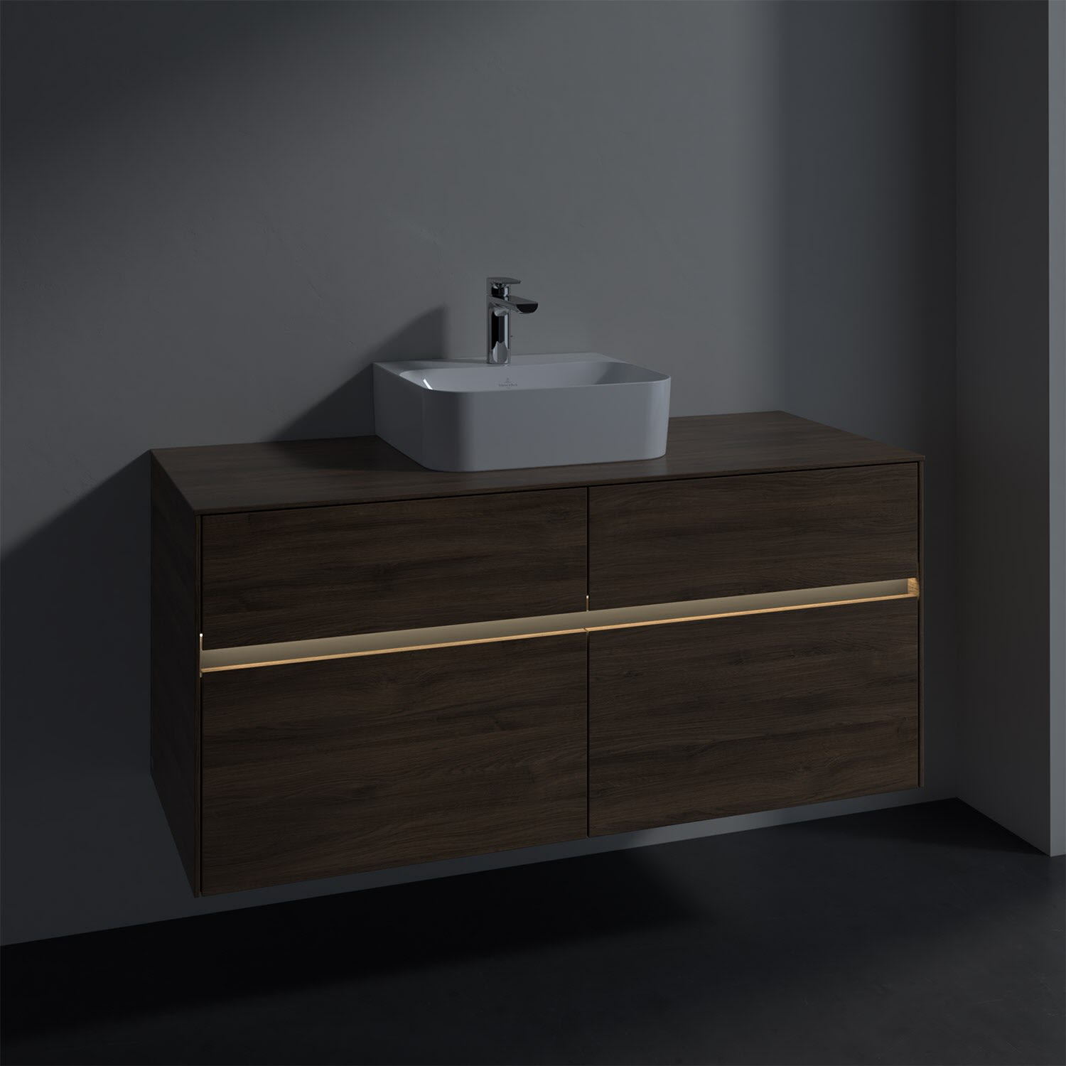 Villeroy & Boch Collaro Waschtischunterschrank 120 x 50 cm, mit 4 Auszügen und LED-Beleuchtung für Finion Waschtisch
