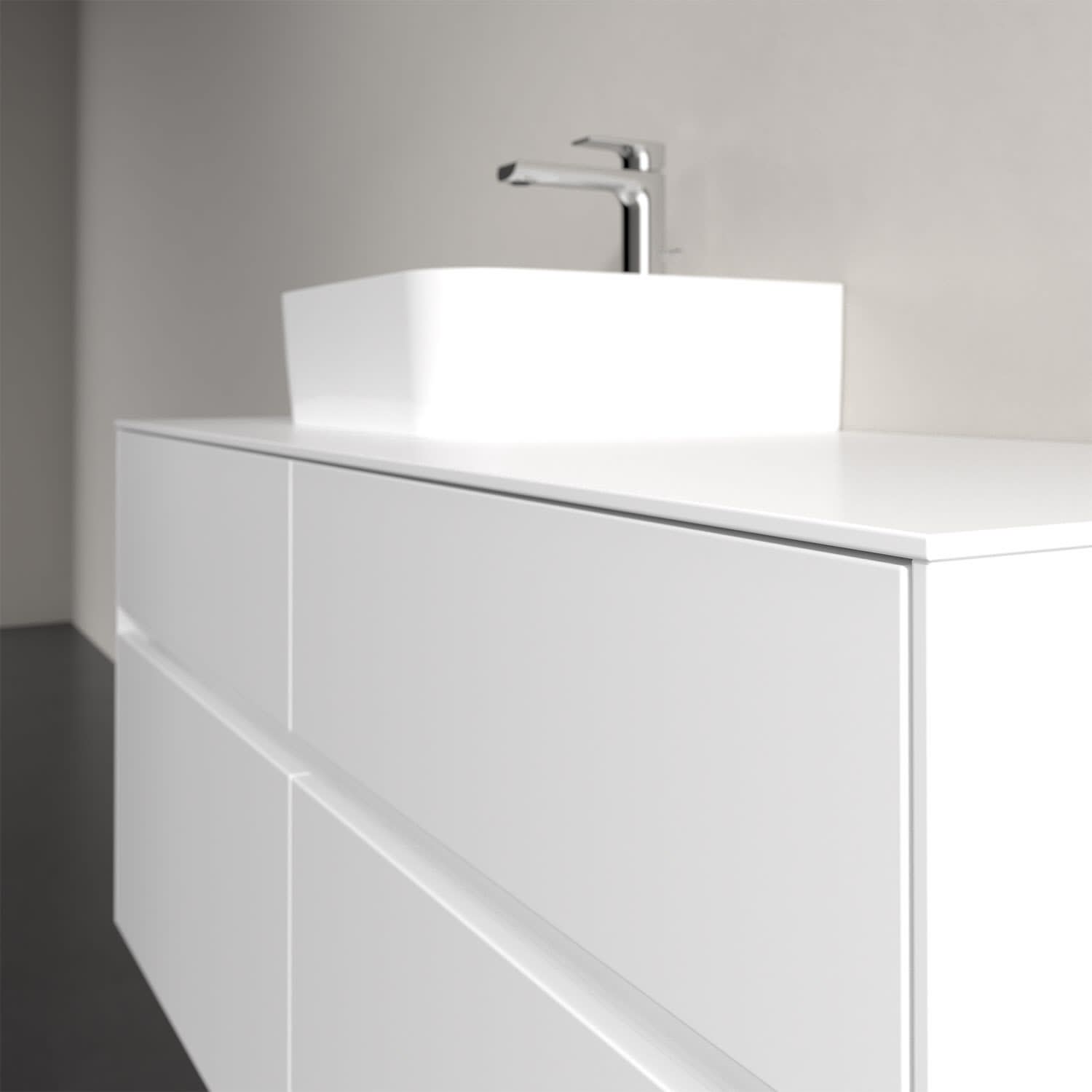 Stauraumwunder im zeitgemäßen Design: Der Villeroy & Boch Waschbeckenunterschrank aus der Collaro Kollektion eignet sich besonders für Familienbäder und bietet genau den Platz, der dort benötigt wird. Eine integrierte Griffleiste sorgt für eine schlichte, moderne Front. Im Inneren bietet das Möbelstück mit vier Auszügen erstaunlich viel Komfort – ermöglicht durch großzügiges Platzangebot und den integrierten Antirutschboden. Variabel setzbare Glasabtrennungen und mitgelieferte Accessory Boxen sorgen für den nötigen Überblick. Dank SoftClosing und Selbsteinzug lassen sich die Auszüge nach der Nutzung lautlos schließen. Für eine besonders leichte Pflege sorgt die pflegeleichte Direktbeschichtung.