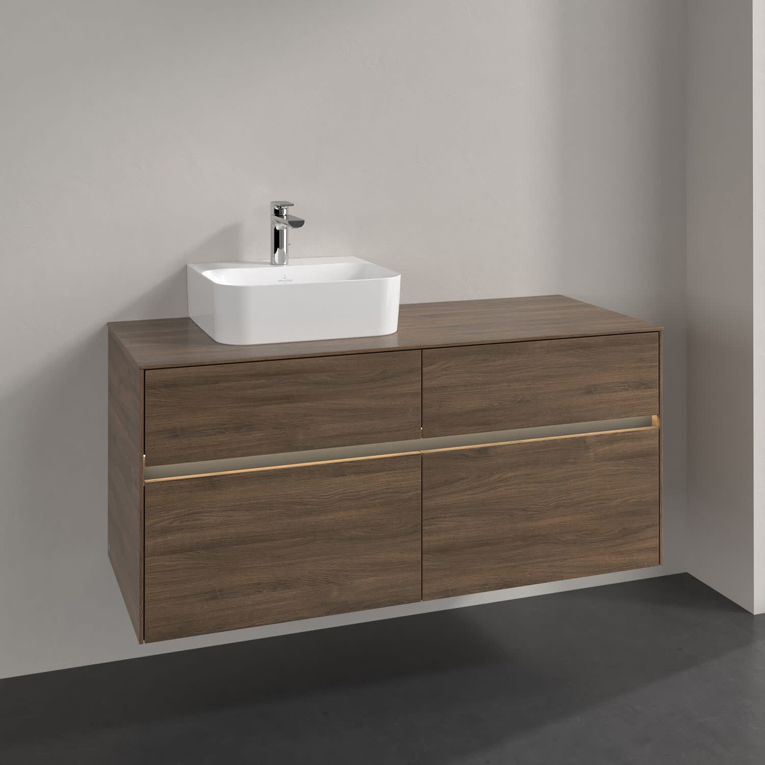 Villeroy & Boch Collaro Waschtischunterschrank 120 x 50 cm, mit 4 Auszügen und LED-Beleuchtung für Finion Waschtisch