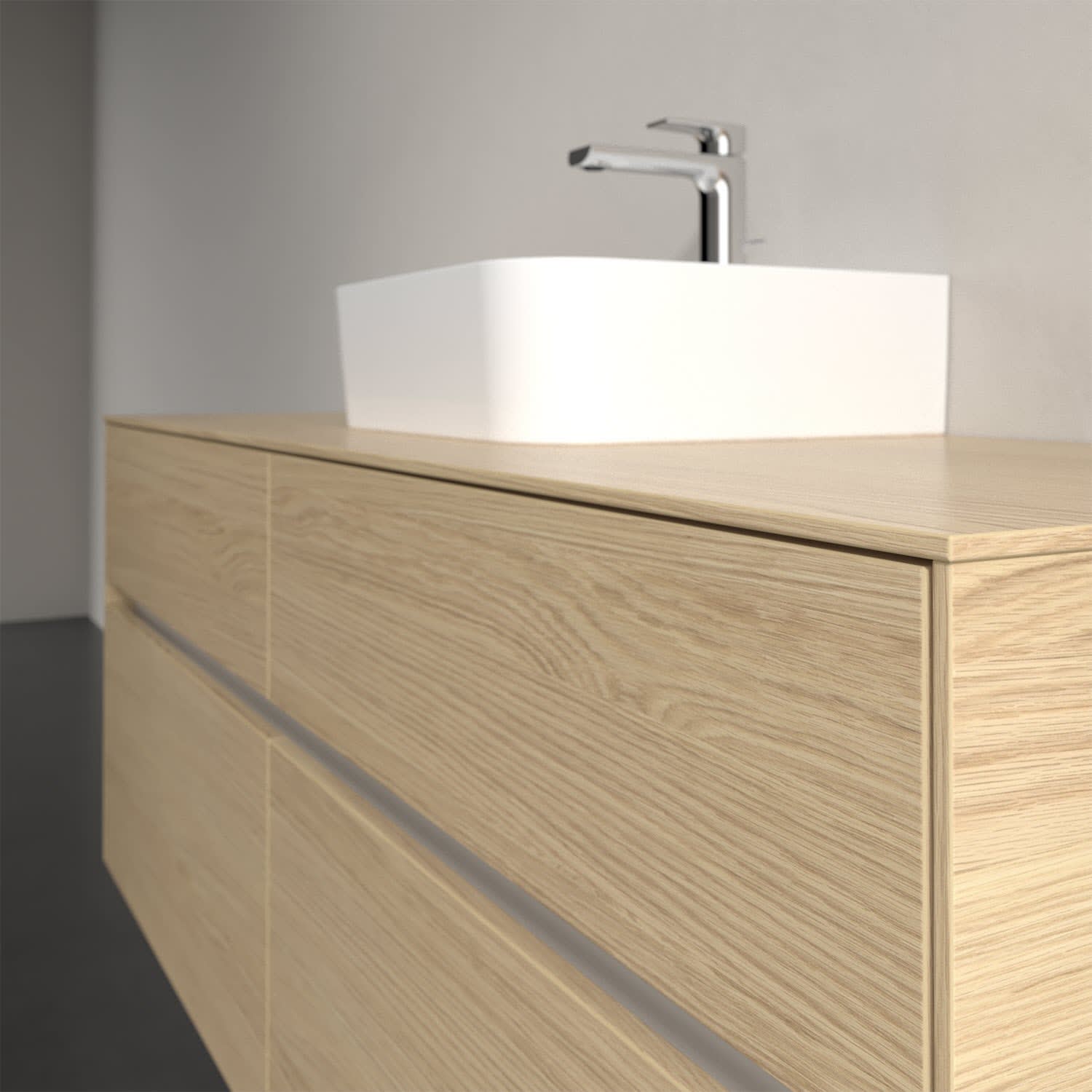 Stauraumwunder im zeitgemäßen Design: Der Villeroy & Boch Waschbeckenunterschrank aus der Collaro Kollektion eignet sich besonders für Familienbäder und bietet genau den Platz, der dort benötigt wird. Eine integrierte Griffleiste sorgt für eine schlichte, moderne Front. Im Inneren bietet das Möbelstück mit vier Auszügen erstaunlich viel Komfort – ermöglicht durch großzügiges Platzangebot und den integrierten Antirutschboden. Variabel setzbare Glasabtrennungen und mitgelieferte Accessory Boxen sorgen für den nötigen Überblick. Dank SoftClosing und Selbsteinzug lassen sich die Auszüge nach der Nutzung lautlos schließen. Für eine besonders leichte Pflege sorgt die pflegeleichte Direktbeschichtung.