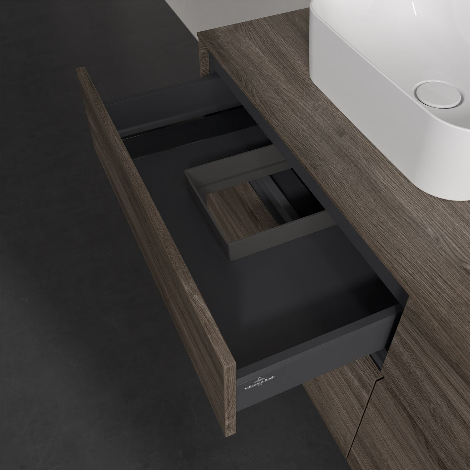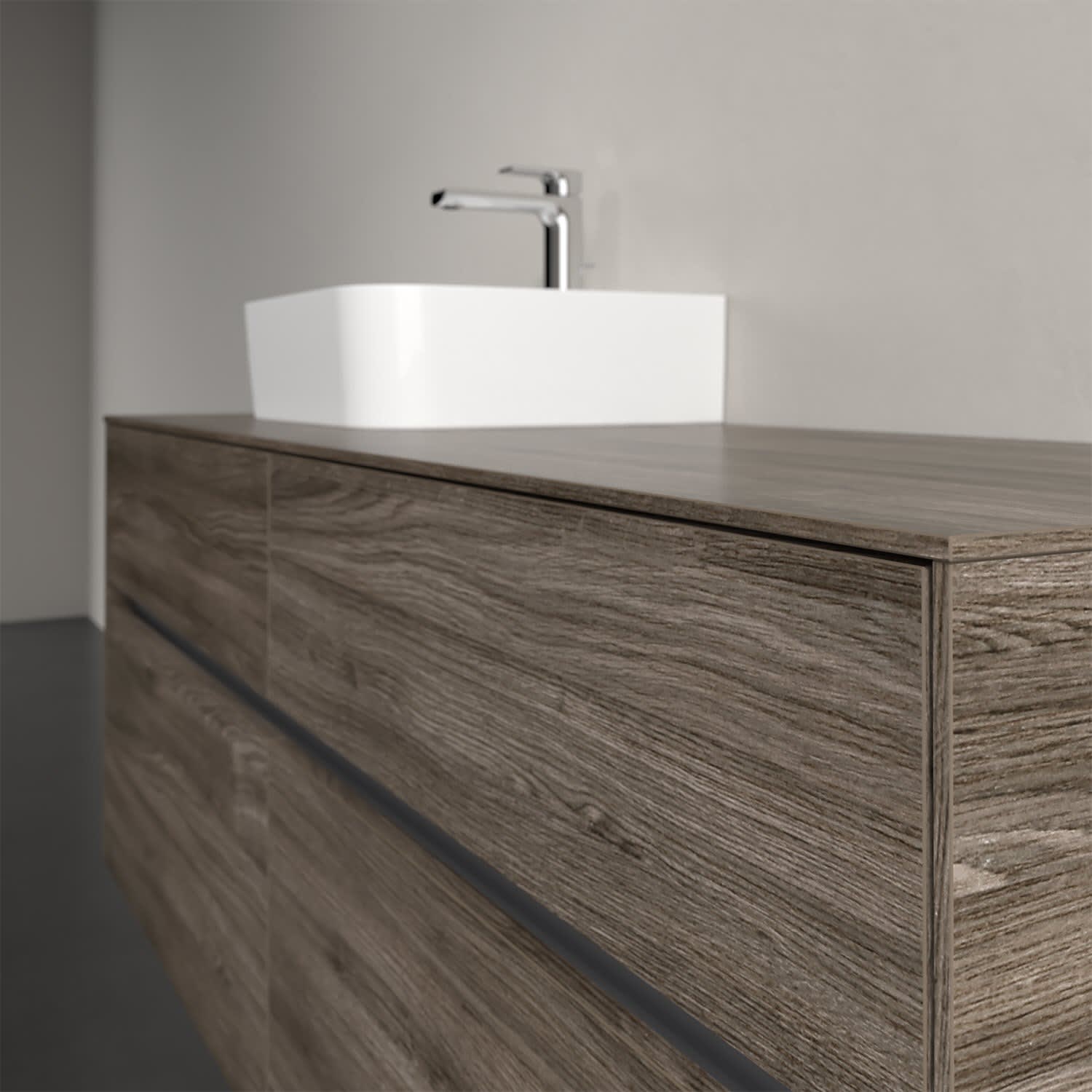 Stauraumwunder im zeitgemäßen Design: Der Villeroy & Boch Waschbeckenunterschrank aus der Collaro Kollektion eignet sich besonders für Familienbäder und bietet genau den Platz, der dort benötigt wird. Eine integrierte Griffleiste sorgt für eine schlichte, moderne Front. Steuern lässt sich das Licht über einen Touch-Sensor seitlich am Unterschrank. Im Inneren bietet das Möbelstück mit vier Auszügen erstaunlich viel Komfort – ermöglicht durch großzügiges Platzangebot und den integrierten Antirutschboden. Variabel setzbare Glasabtrennungen und mitgelieferte Accessory Boxen sorgen für den nötigen Überblick. Dank SoftClosing und Selbsteinzug lassen sich die Auszüge nach der Nutzung lautlos schließen. Für eine besonders leichte Pflege sorgt die pflegeleichte Direktbeschichtung.