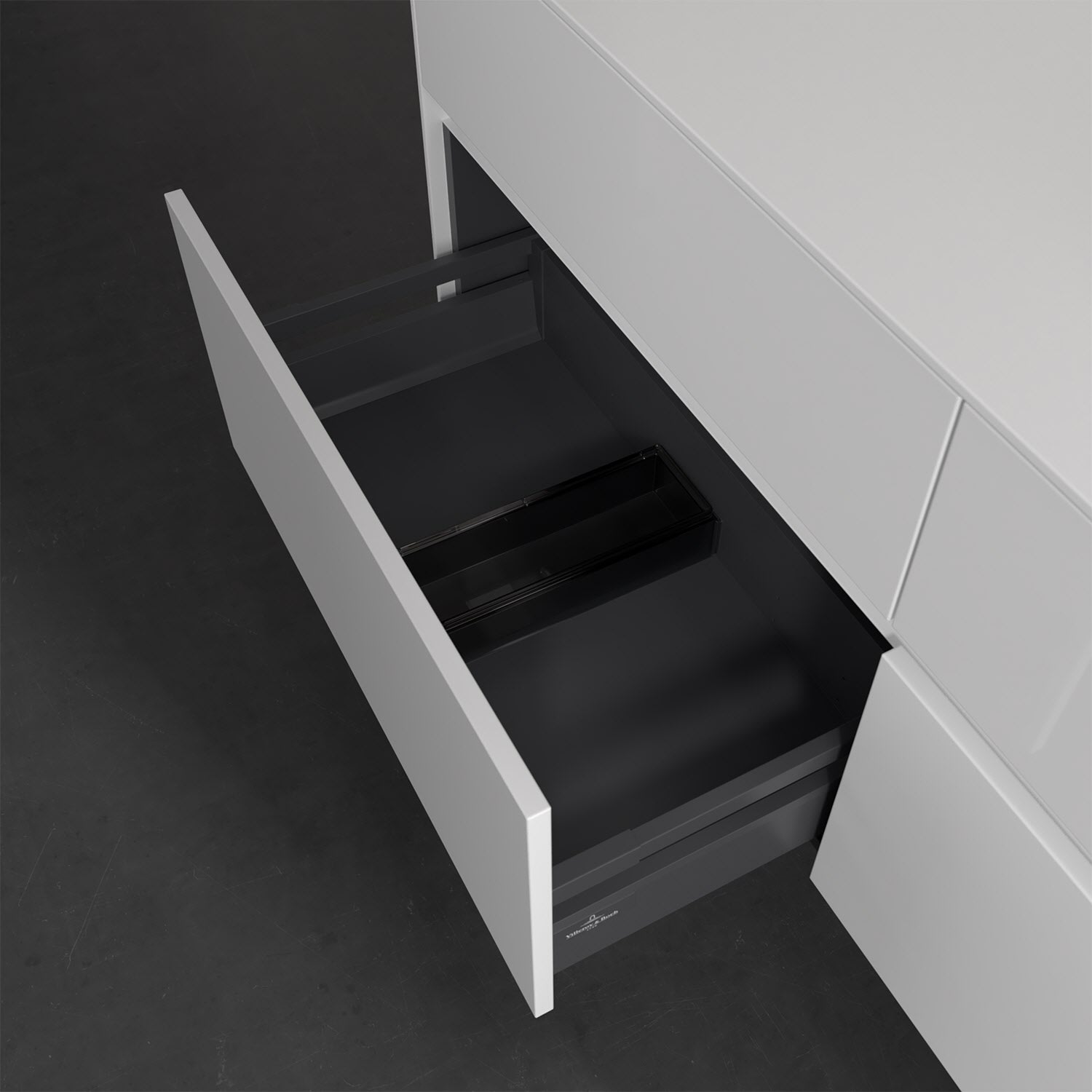 Stauraumwunder im zeitgemäßen Design: Der Villeroy & Boch Waschbeckenunterschrank aus der Collaro Kollektion eignet sich besonders für Familienbäder und bietet genau den Platz, der dort benötigt wird. Eine integrierte Griffleiste sorgt für eine schlichte, moderne Front. Steuern lässt sich das Licht über einen Touch-Sensor seitlich am Unterschrank. Im Inneren bietet das Möbelstück mit vier Auszügen erstaunlich viel Komfort – ermöglicht durch großzügiges Platzangebot und den integrierten Antirutschboden. Variabel setzbare Glasabtrennungen und mitgelieferte Accessory Boxen sorgen für den nötigen Überblick. Dank SoftClosing und Selbsteinzug lassen sich die Auszüge nach der Nutzung lautlos schließen. Für eine besonders leichte Pflege sorgt die widerstandsfähige Acryloberfläche.