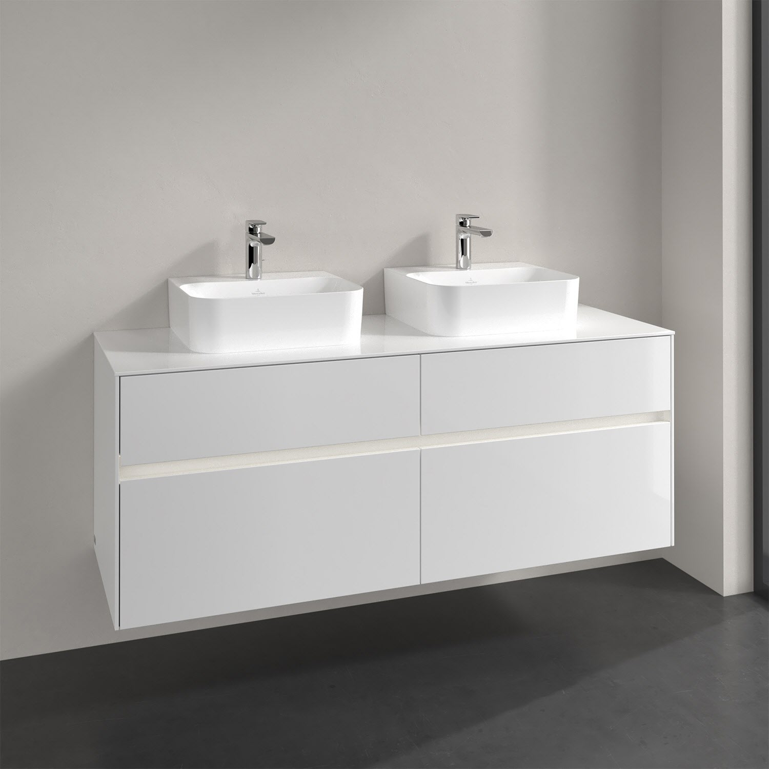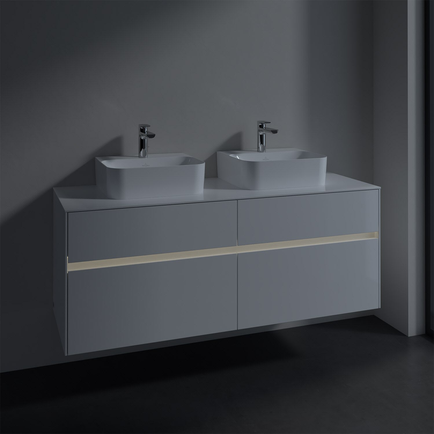 Villeroy & Boch Collaro Waschtischunterschrank 140 x 50 cm, mit 4 Auszügen und LED-Beleuchtung für 2 Finion Waschtische