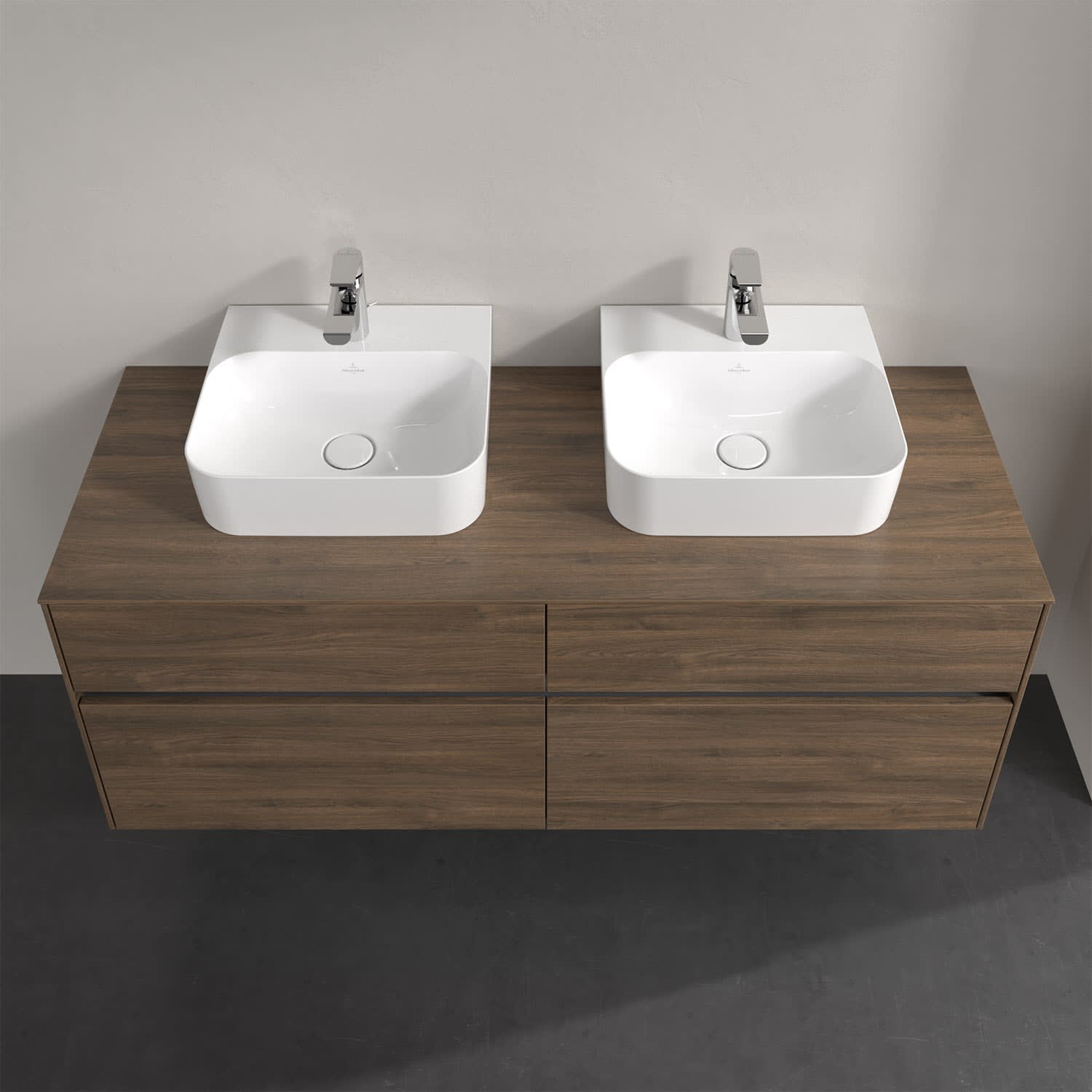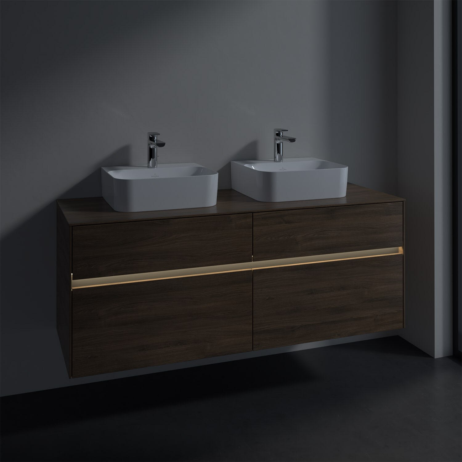 Villeroy & Boch Collaro Waschtischunterschrank 140 x 50 cm, mit 4 Auszügen und LED-Beleuchtung für 2 Finion Waschtische
