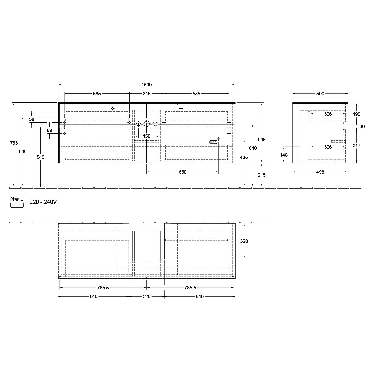 Villeroy & Boch Collaro Waschtischunterschrank 160 x 50 cm, mit 4 Auszügen für Finion Waschtisch