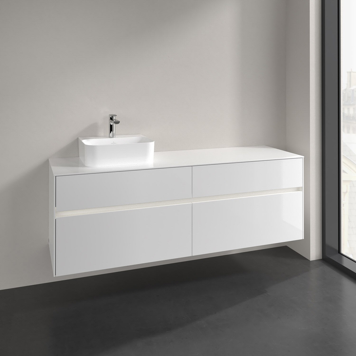 Villeroy & Boch Collaro Waschtischunterschrank 160 x 50 cm, mit 4 Auszügen und LED-Beleuchtung für Finion Waschtisch