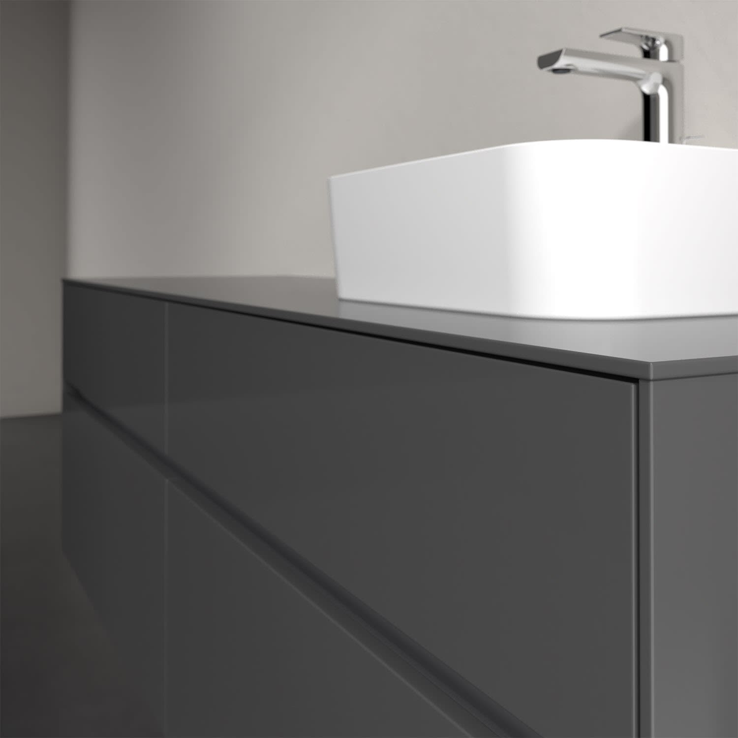 Stauraumwunder im zeitgemäßen Design: Der Villeroy & Boch Waschbeckenunterschrank aus der Collaro Kollektion eignet sich besonders für Familienbäder und bietet genau den Platz, der dort benötigt wird. Eine integrierte Griffleiste sorgt für eine schlichte, moderne Front. Steuern lässt sich das Licht über einen Touch-Sensor seitlich am Unterschrank. Im Inneren bietet das Möbelstück mit vier Auszügen erstaunlich viel Komfort – ermöglicht durch großzügiges Platzangebot und den integrierten Antirutschboden. Variabel setzbare Glasabtrennungen und mitgelieferte Accessory Boxen sorgen für den nötigen Überblick. Dank SoftClosing und Selbsteinzug lassen sich die Auszüge nach der Nutzung lautlos schließen. Für eine besonders leichte Pflege sorgt die widerstandsfähige Acryloberfläche.
