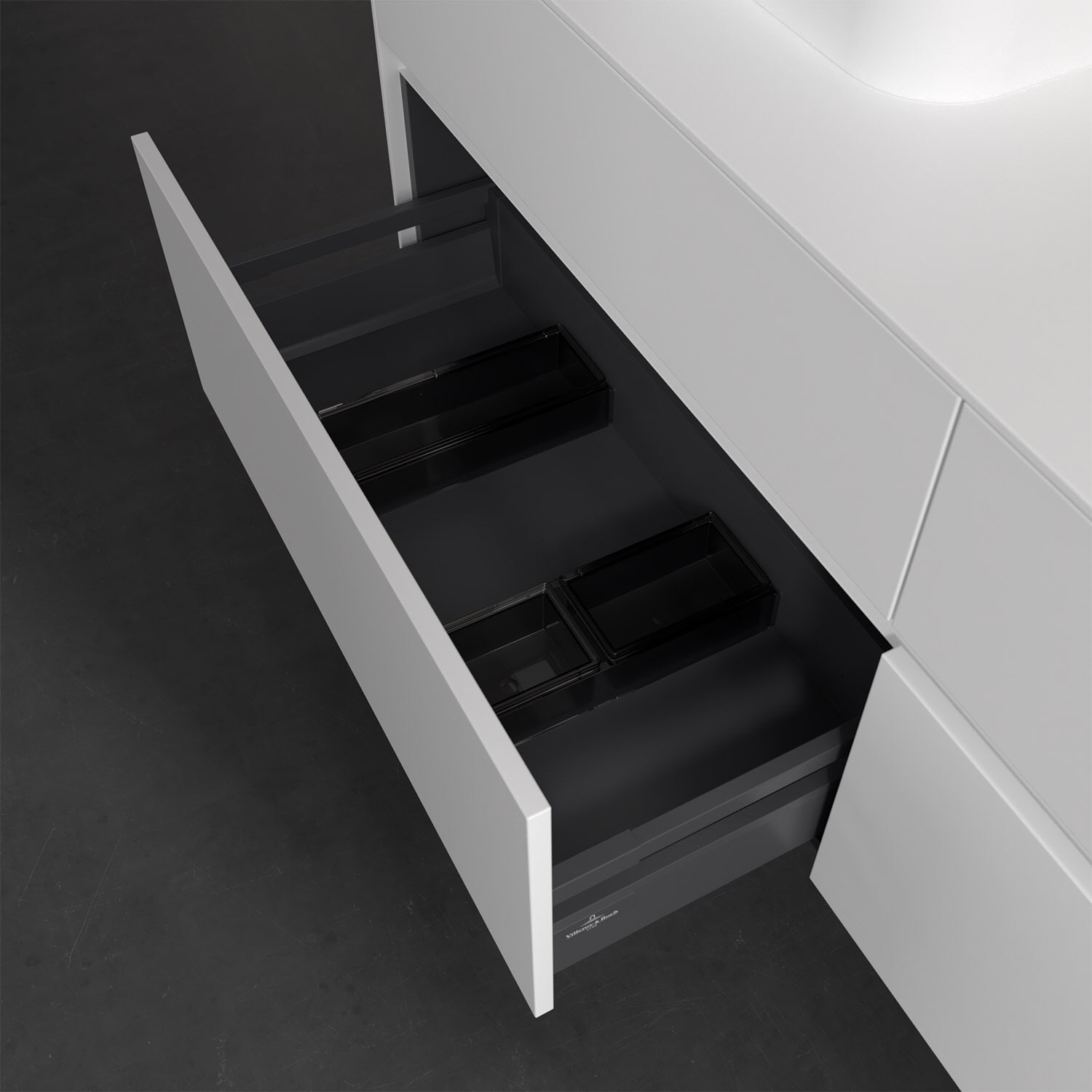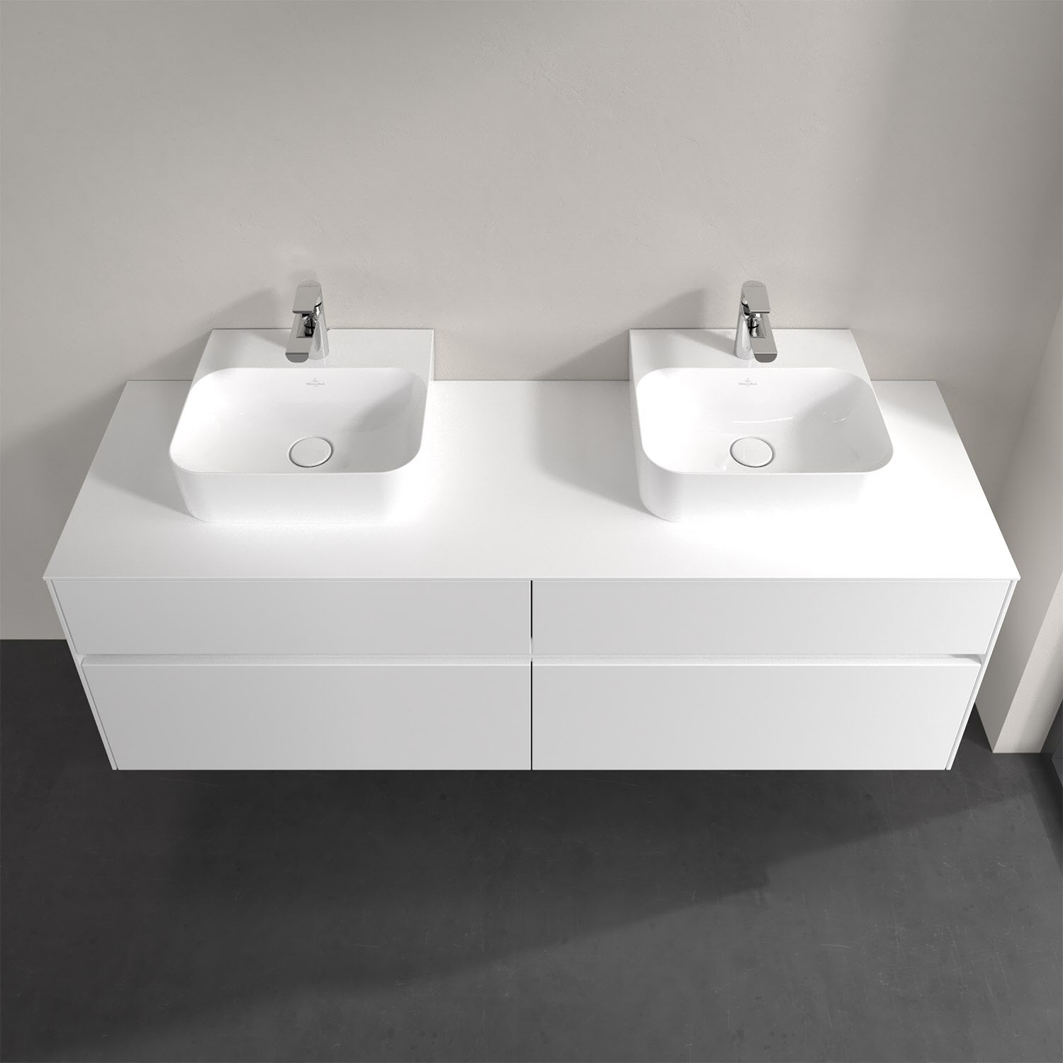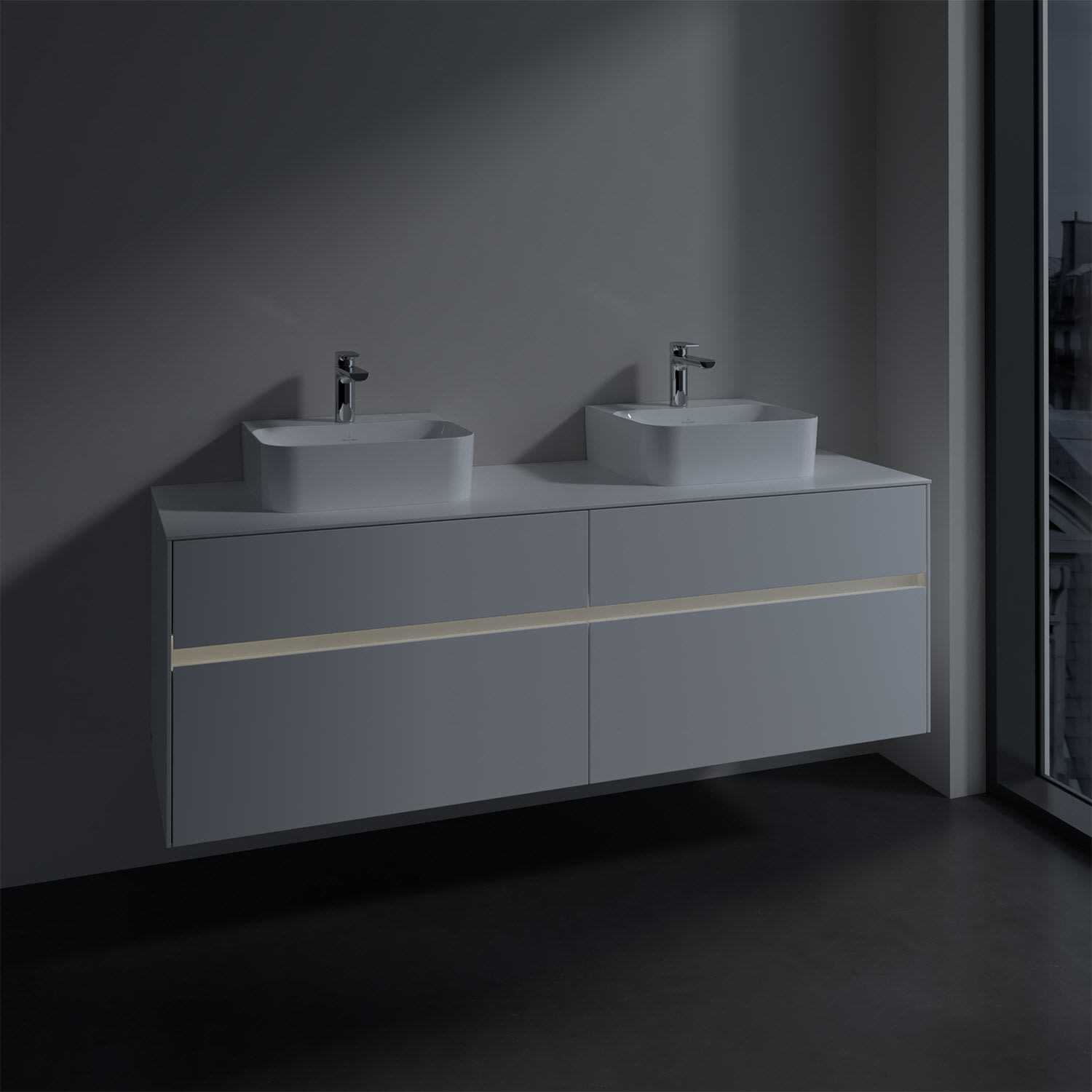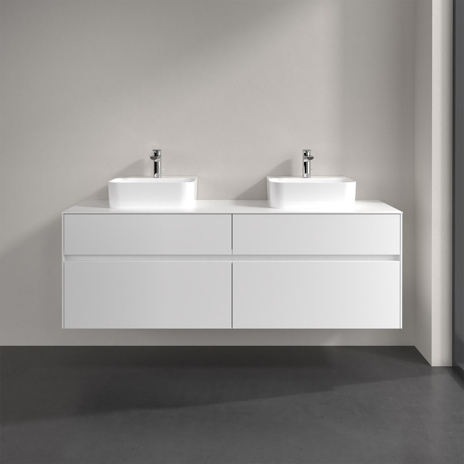 Villeroy & Boch Collaro Waschtischunterschrank 160 x 50 cm, mit 4 Auszügen und LED-Beleuchtung für 2 Finion Waschtische